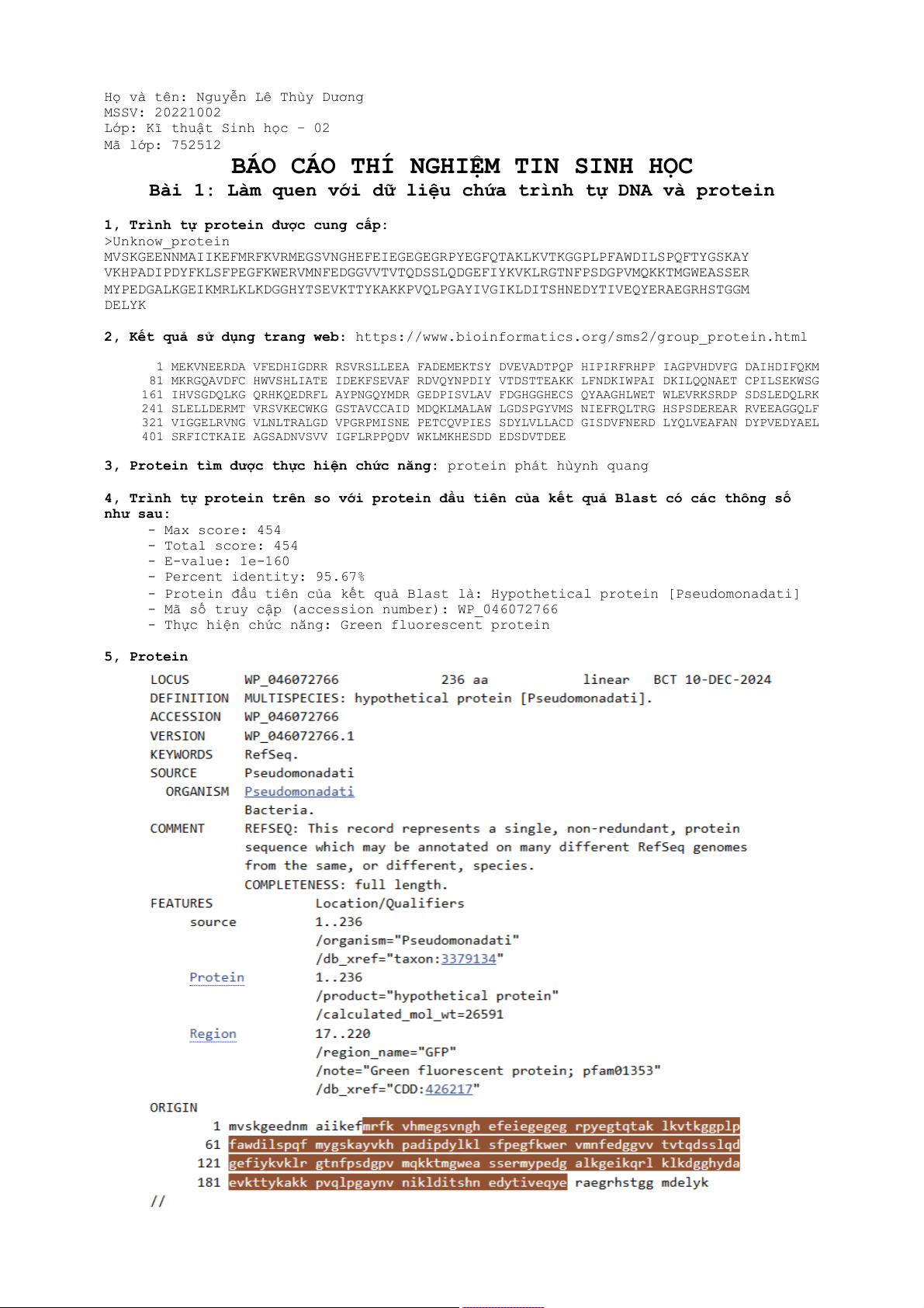 BÁO CÁO THÍ NGHIỆM TIN SINH HỌC