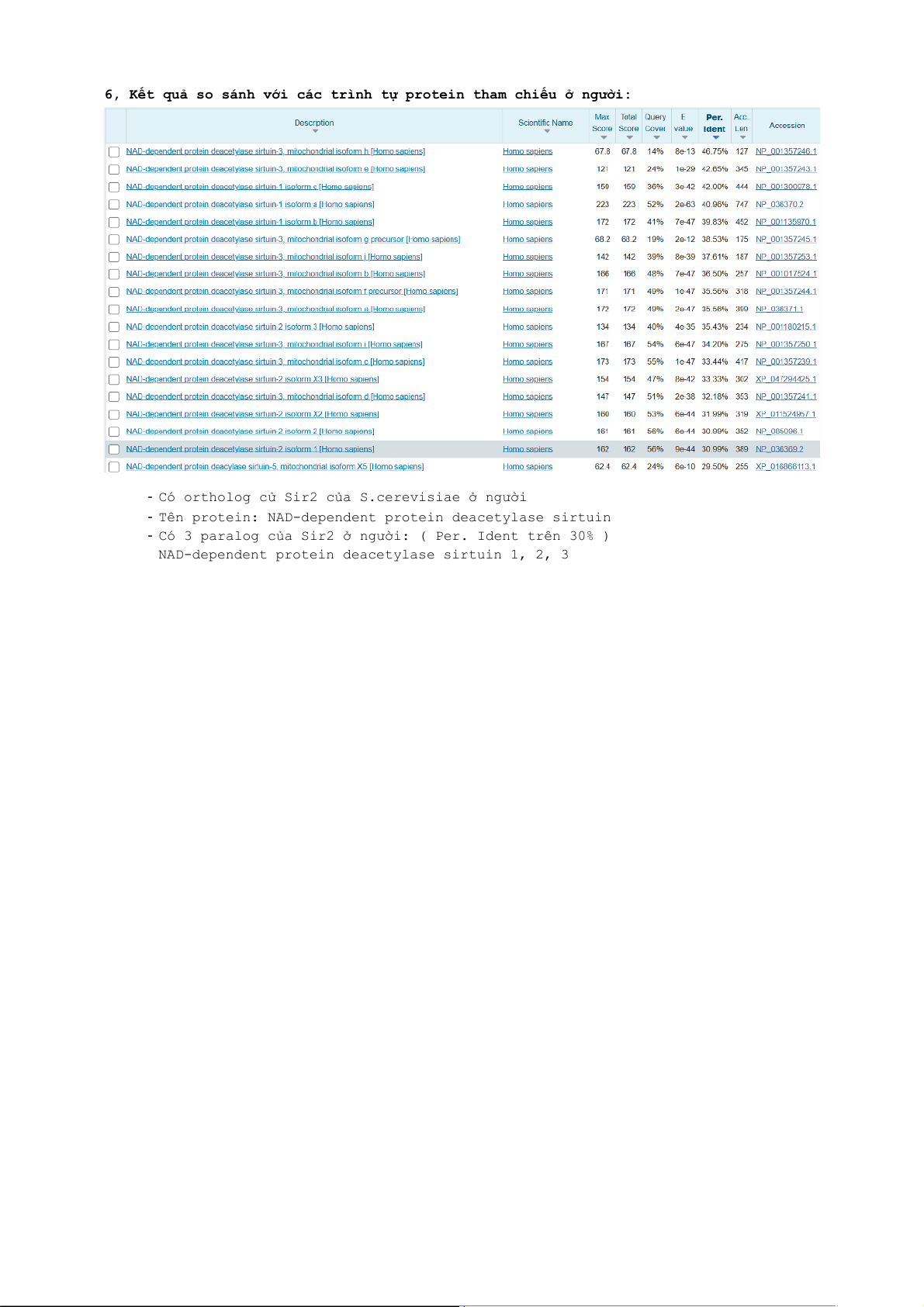 6, Kết quả so sánh với các trình tự protein tham chiếu ở người: