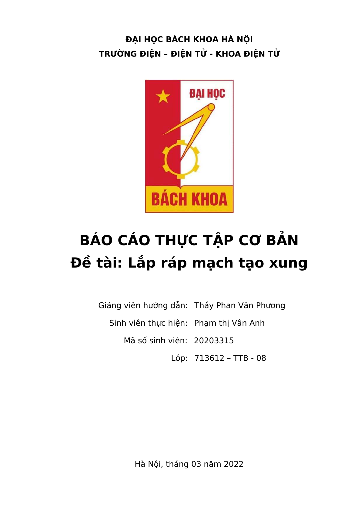 Sinh viên thực hiện: Phạm thị Vân Anh Mã số sinh viên: 20203315 Lớp: 713612 – TTB - 08 Hà Nội, tháng 03 năm 2022 Mục lục