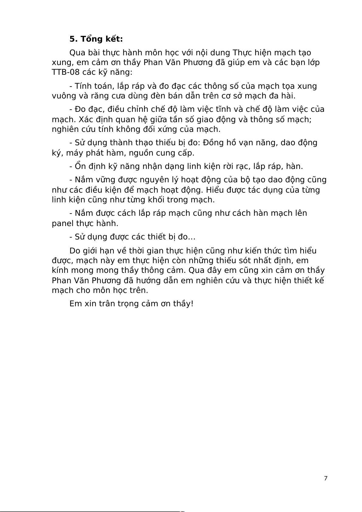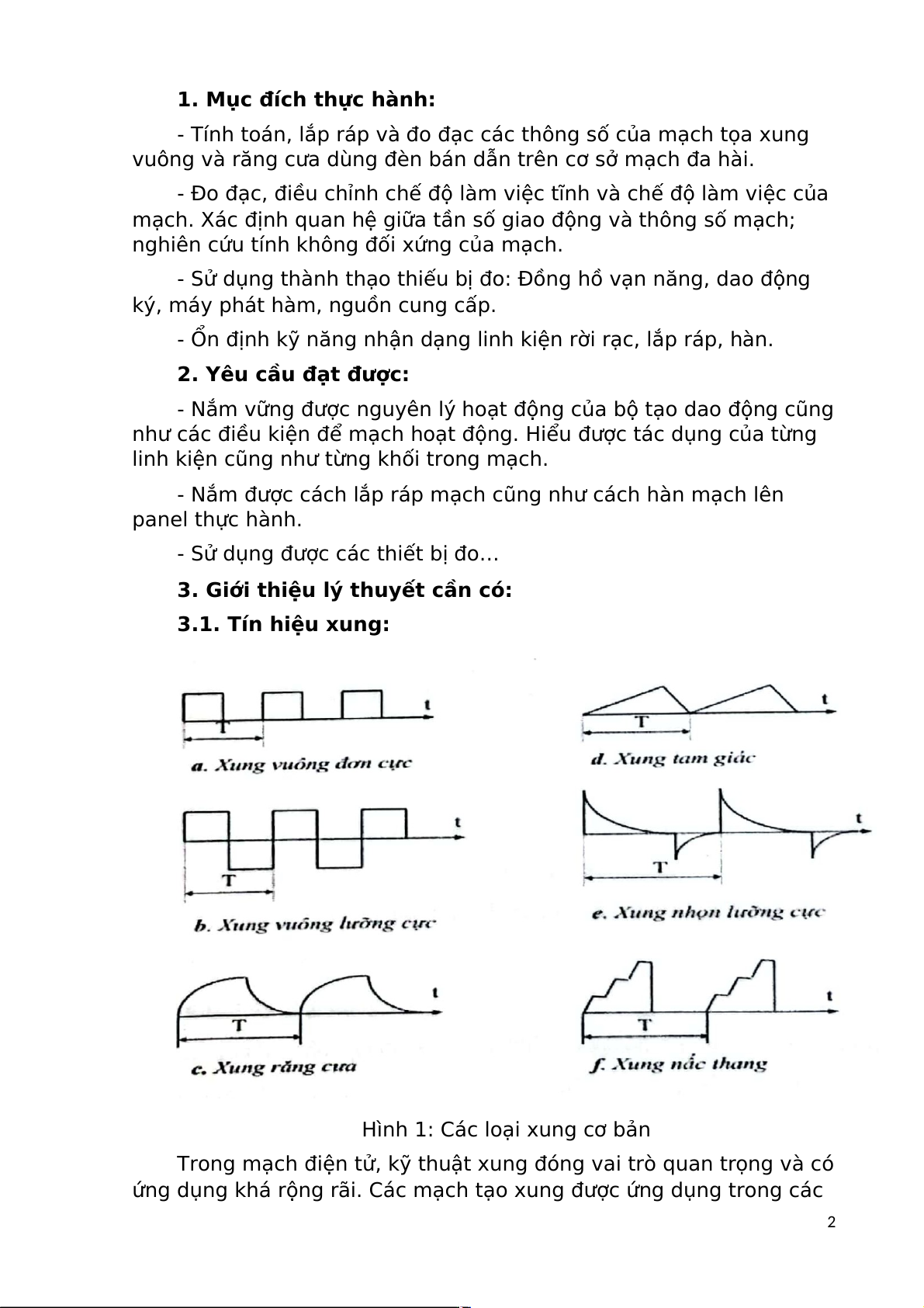 - Tính toán, lắp ráp và đo đạc các thông số của mạch tọa xung
