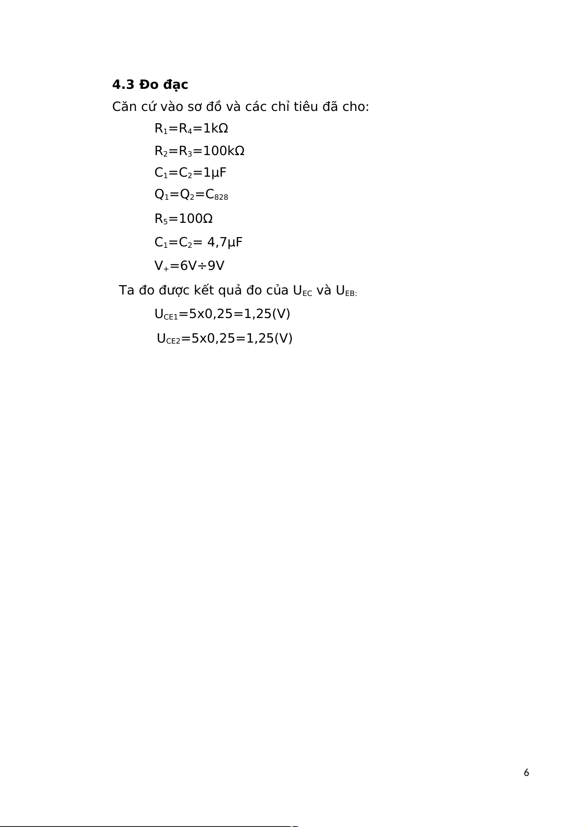 Ta đo được kết quả đo của UEC và UEB: UCE1=5x0,25=1,25(V) UCE2=5x0,25=1,25(V) 6 5. Tổng kết: