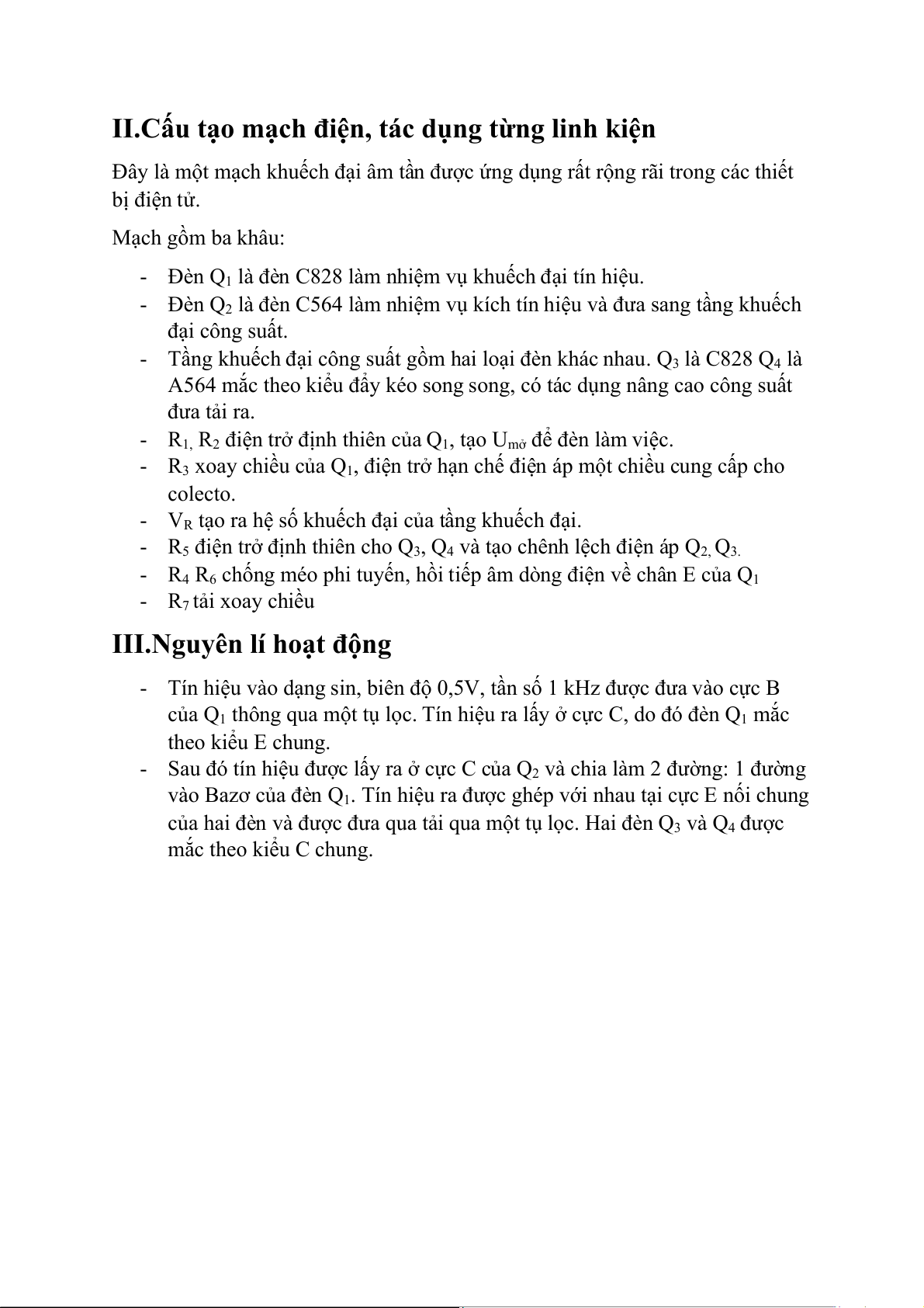 II.Cấu tạo mạch điện, tác dụng từng linh kiện