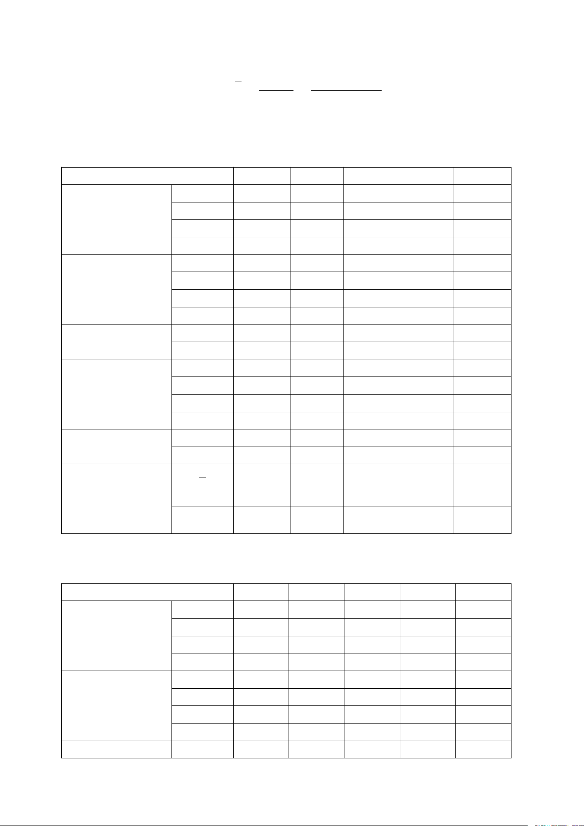 b) Va chạm mềm với m1=0.2 kg, m2=0.1 kg n 1 2 3 4 5 v1 0.418 0.393 0.537 0.537 0.215 Vận tốc v2 0 0 0 0 0 (m/s) v’1 0.269 0.251 0.351 0.348 0.131 v’2 0.272 0.253 0.351 0.35 0.135 p1 83.7 78.6 107.4 104.6 43.1 p Động lượng 2 0 0 0 0 0 p’1 53.9 50.2 70.2 69.7 26.2 p’2 27.2 25.3 35.1 35 13.5 Tổng động lượng p 83.7 78.6 107.4 104.6 43.1 p’ 81.1 75.5 105.3 104.7 39.7 E1 17.51 15.43 28.86 27.37 4.63 E Năng lượng 2 0 0 0 0 0 E’1 7.26 6.29 12.31 12.14 1.72 E’2 3.7 3.21 6.16 6.12 0.92 E 17.51 15.43 28.86 27.37 4.63 Tổng năng lượng E’ 10.96 9.51 18.47 18.26 2.63 E Độ suy hao năng E 37.4 38.4 36 33.3 43.2 lượng Đo được (%) Tính theo công thức 33.3 33.3 33.3 33.3 33.3
