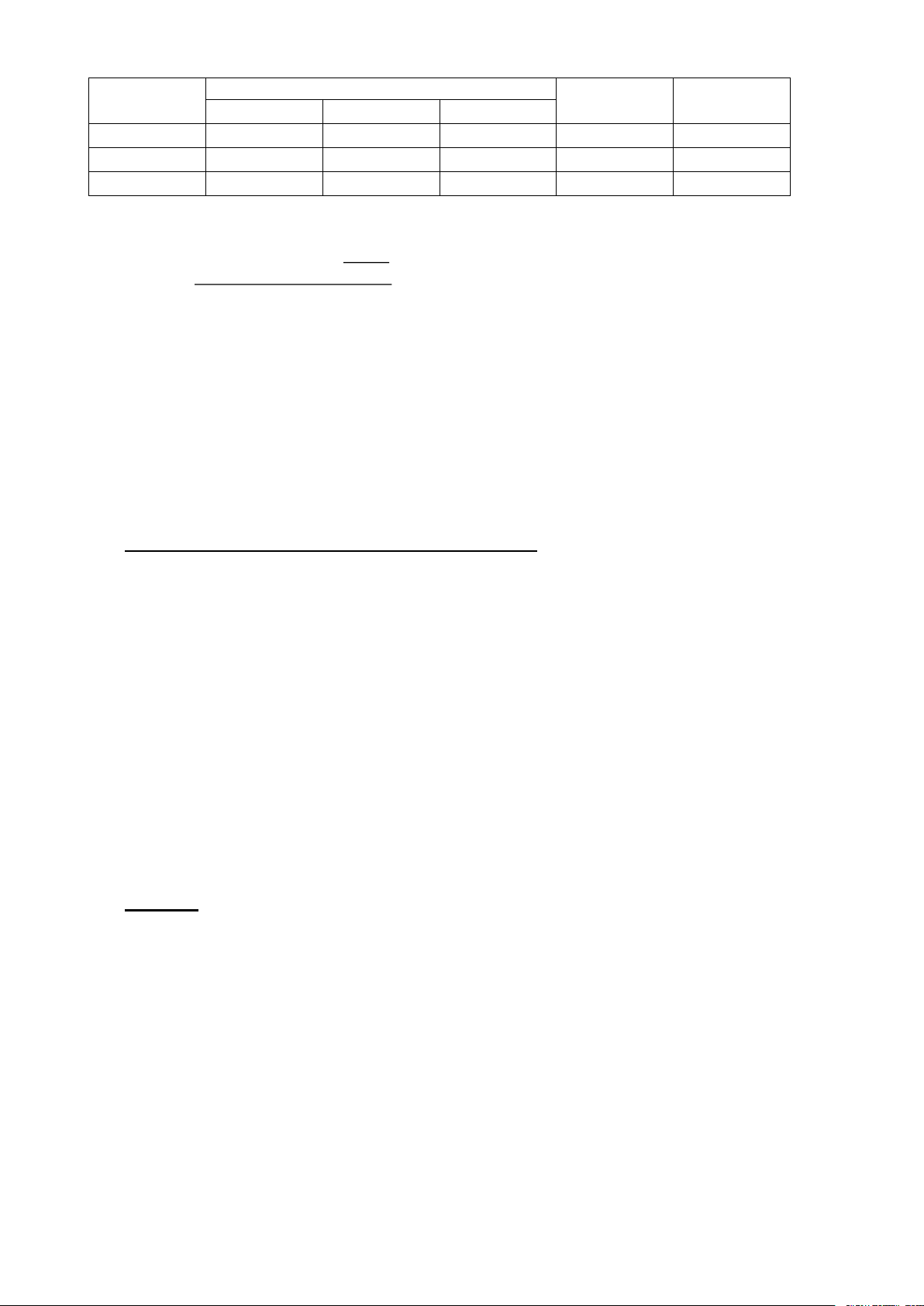 c) Va chạm mềm với m1=0.1 kg, m2=0.2 kg n 1 2 3 4 5 v1 0.783 0.761 1,019 1.019 0.648 Vận tốc v2 0 0 0 0 0 (m/s) v’1 0.251 0.241 0.324 0.203 0.226 v’2 0.254 0.243 0.324 0.205 0.227 p1 73.8 76,1 101.9 66.4 64.8 p Động lượng 2 0 0 0 0 0 p’1 25.1 24.1 32,4 20.3 22.6 p’2 50.8 48.6 64.8 41 45.4 p 73.8 76.1 101.9 66.4 64.8 Tổng động lượng p’ 75.9 72.7 97.2 61.3 67.9 E1 27.23 28.95 51,94 22.02 20.96 E Năng lượng 2 0 0 0 0 0 E’1 3.14 2.9 5.25 2.06 2.54 E’2 6.46 5.91 10.49 4.2 5.15 E 27.23 28.95 51.94 20.02 20.96 Tổng năng lượng E’ 9.6 8.81 15,74 6.26 7 .69 E Độ suy hao năng 64.7 E lượng Đo được (sai) 69.6 69.7 71.6 63.3 (sai) (%) Tính theo công thức 66.7 66.7 66.7 66.7 66.7