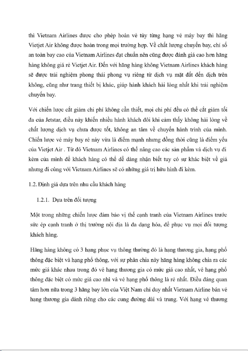 III. Chính sách định giá sản phẩm dịch vụ của V ietnam Airlines