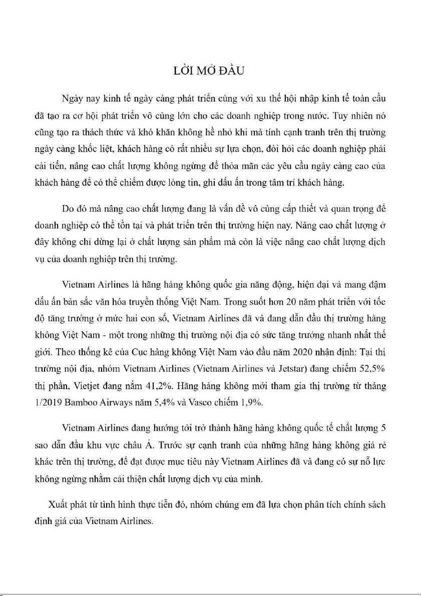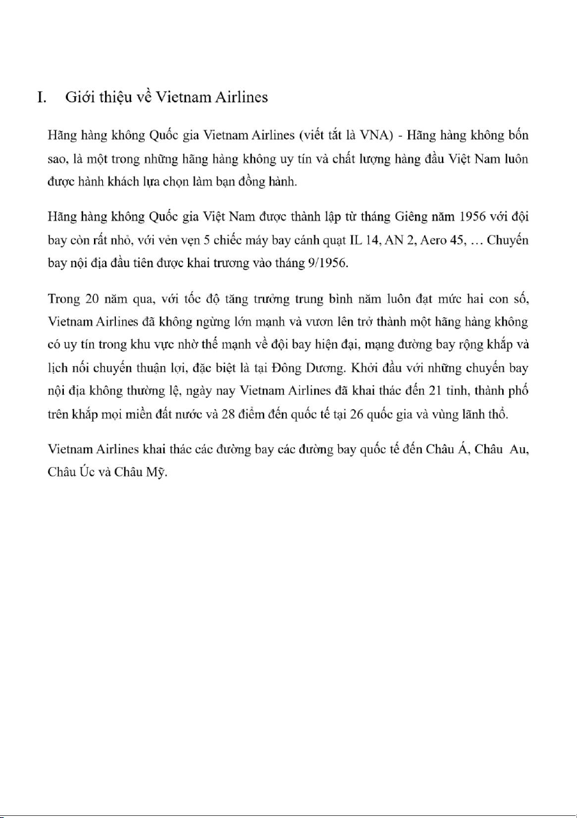 Giới thiệu về Vietnam Airlines..................................................................................7 II.