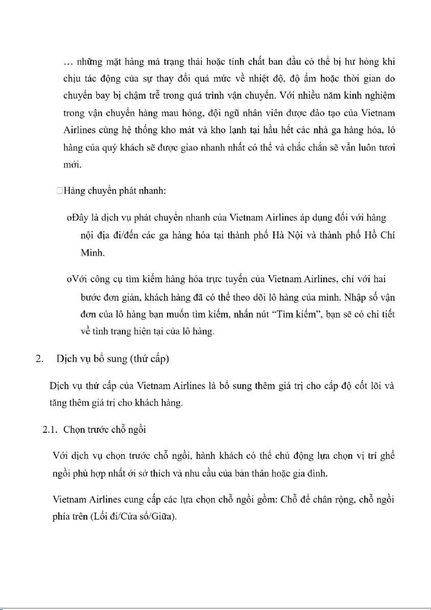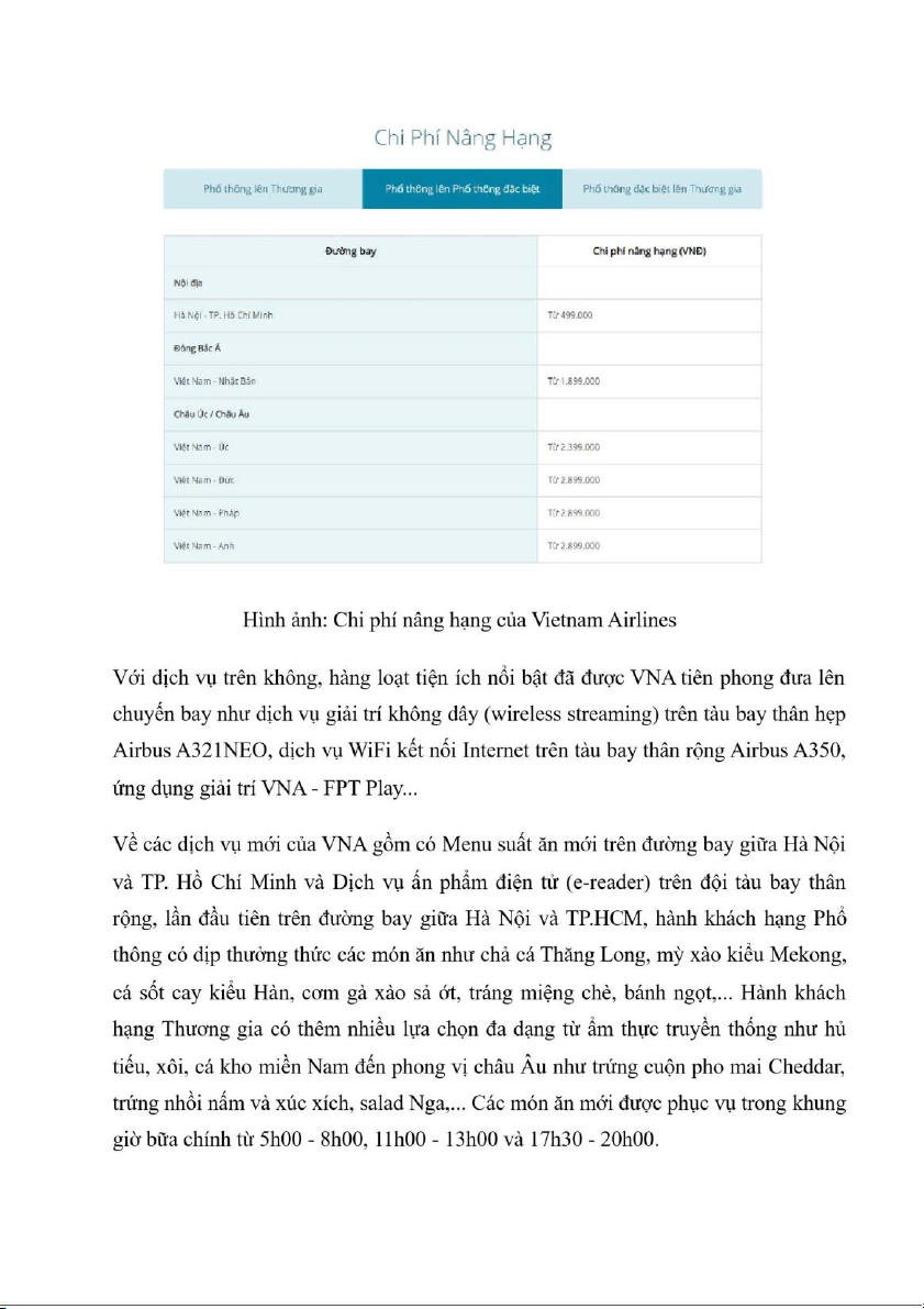 II. Các sản phẩm dịch vụ của V ietnam Airlines