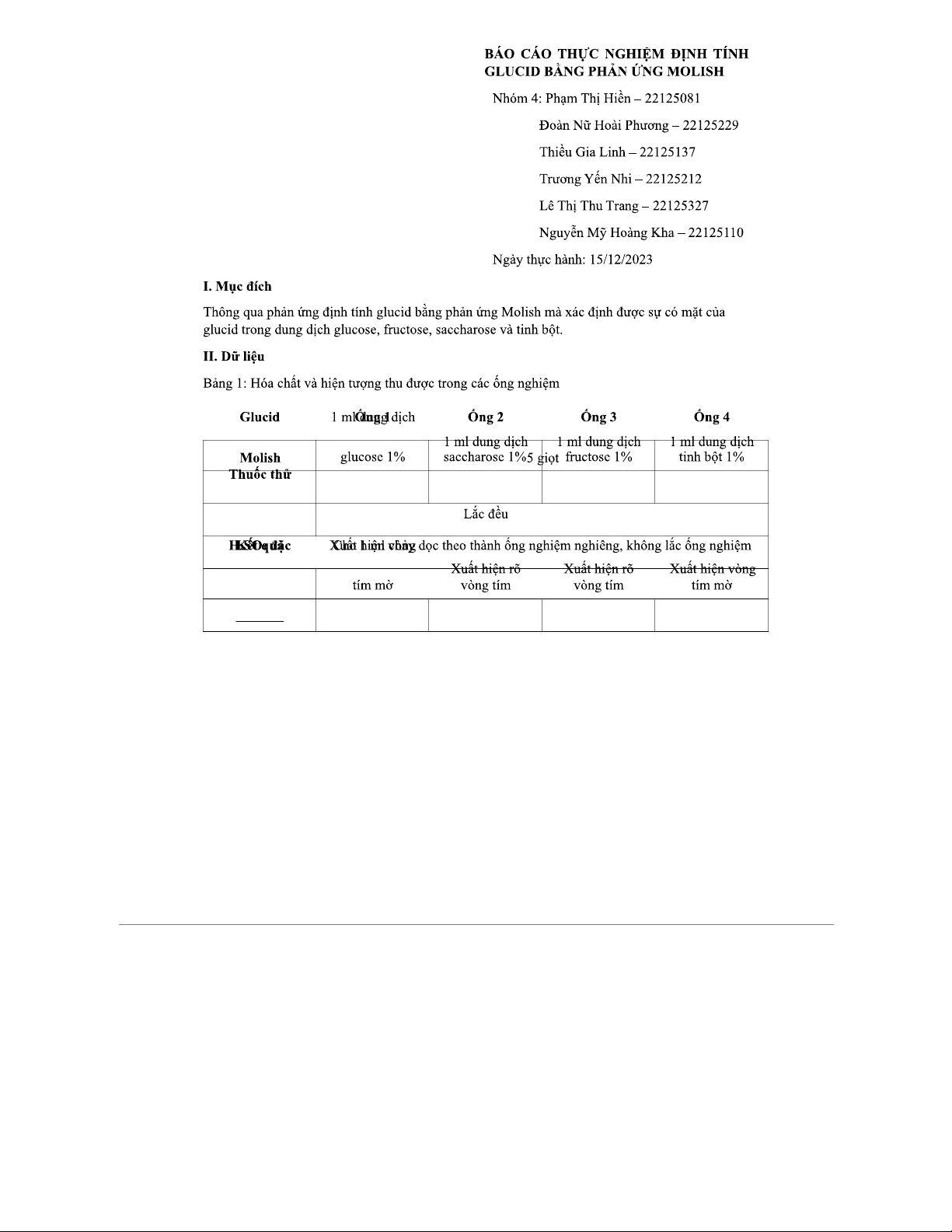 Báo cáo Thực Nghiệm: Định Tính Glucid qua Phản Ứng Molish