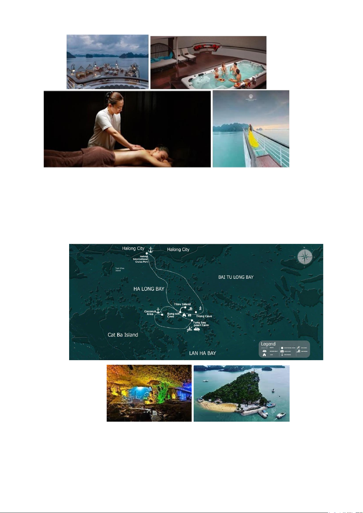 Không gian: Du thuyền được thiết kế với không gian hiện đại và tinh tế. Khách sạn bao