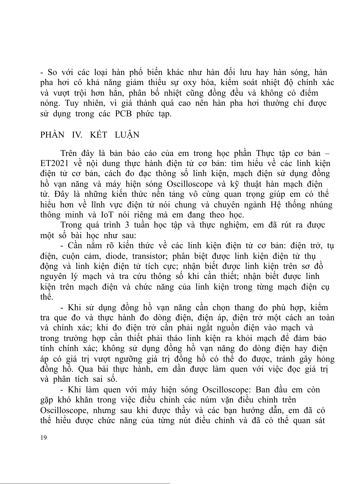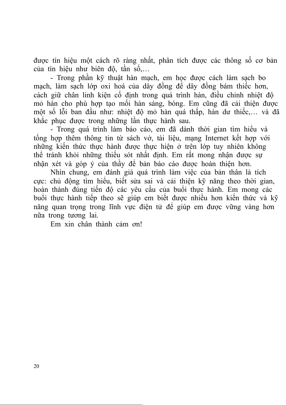 năng quan trọng trong lĩnh vực điện tử để giúp em được vững vàng hơn nữa trong tương lai. Em xin chân thành cảm ơn! 20