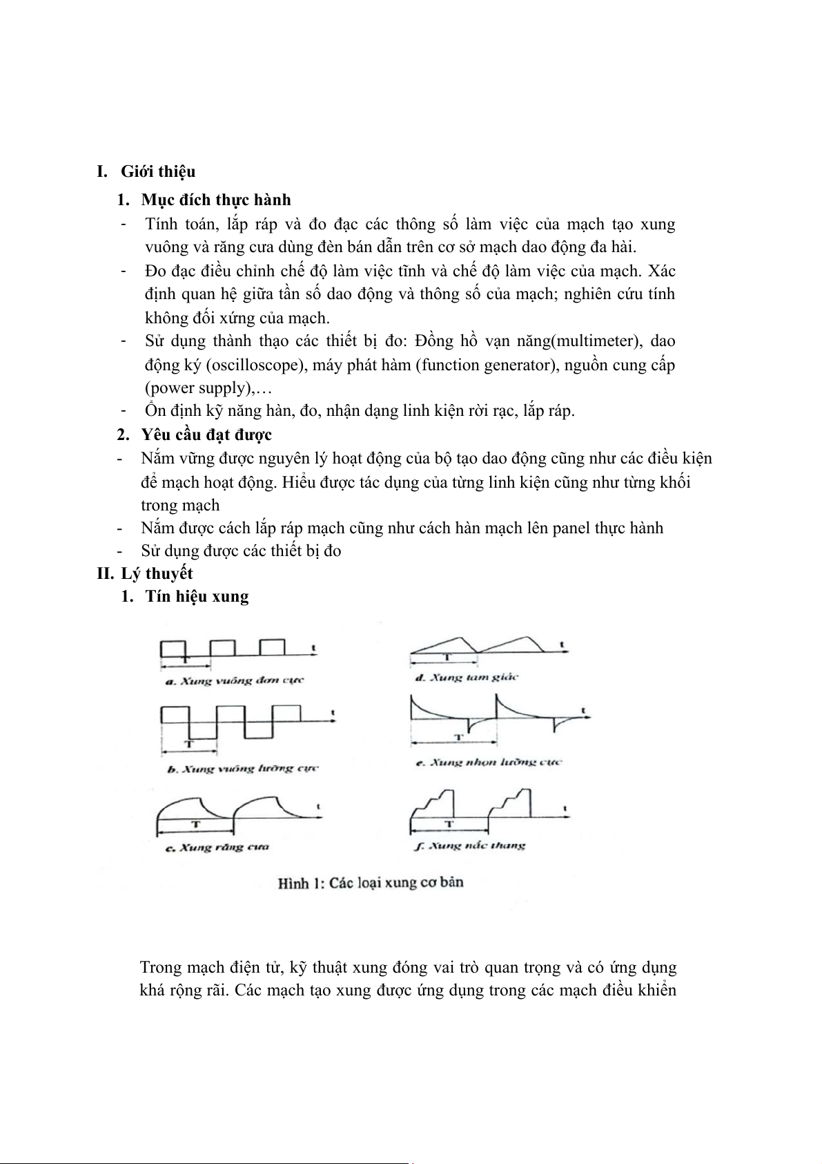 - Sử dụng được các thiết bị đo II. Lý thuyết 1. Tín hiệu xung