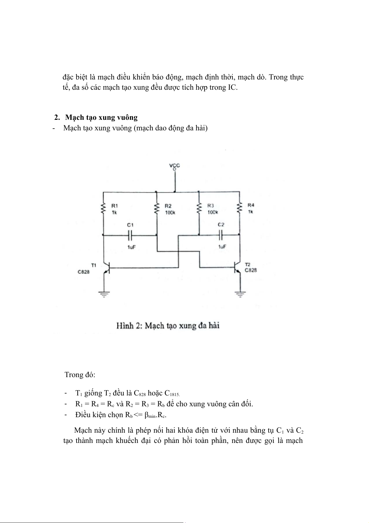 - Mạch tạo xung vuông (mạch dao động đa hài) Trong đó: -