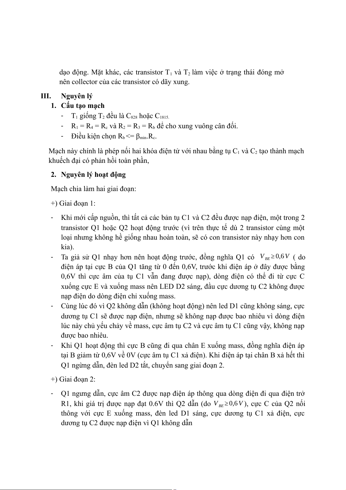 Ta giả sử Q1 nhạy hơn nên hoạt động trước, đồng nghĩa Q1 có V ≥ 0,6 V ( do BE