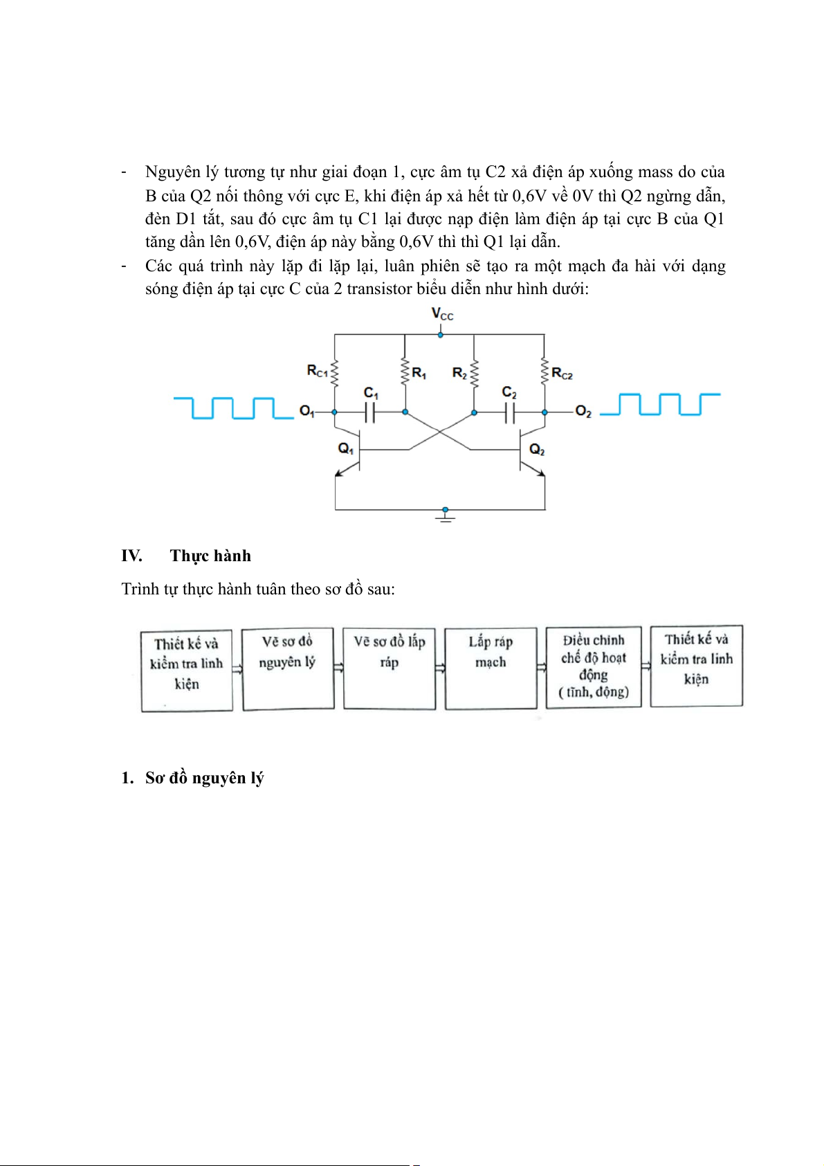 sóng điện áp tại cực C của 2 transistor biểu diễn như hình dưới: IV. Thực hành