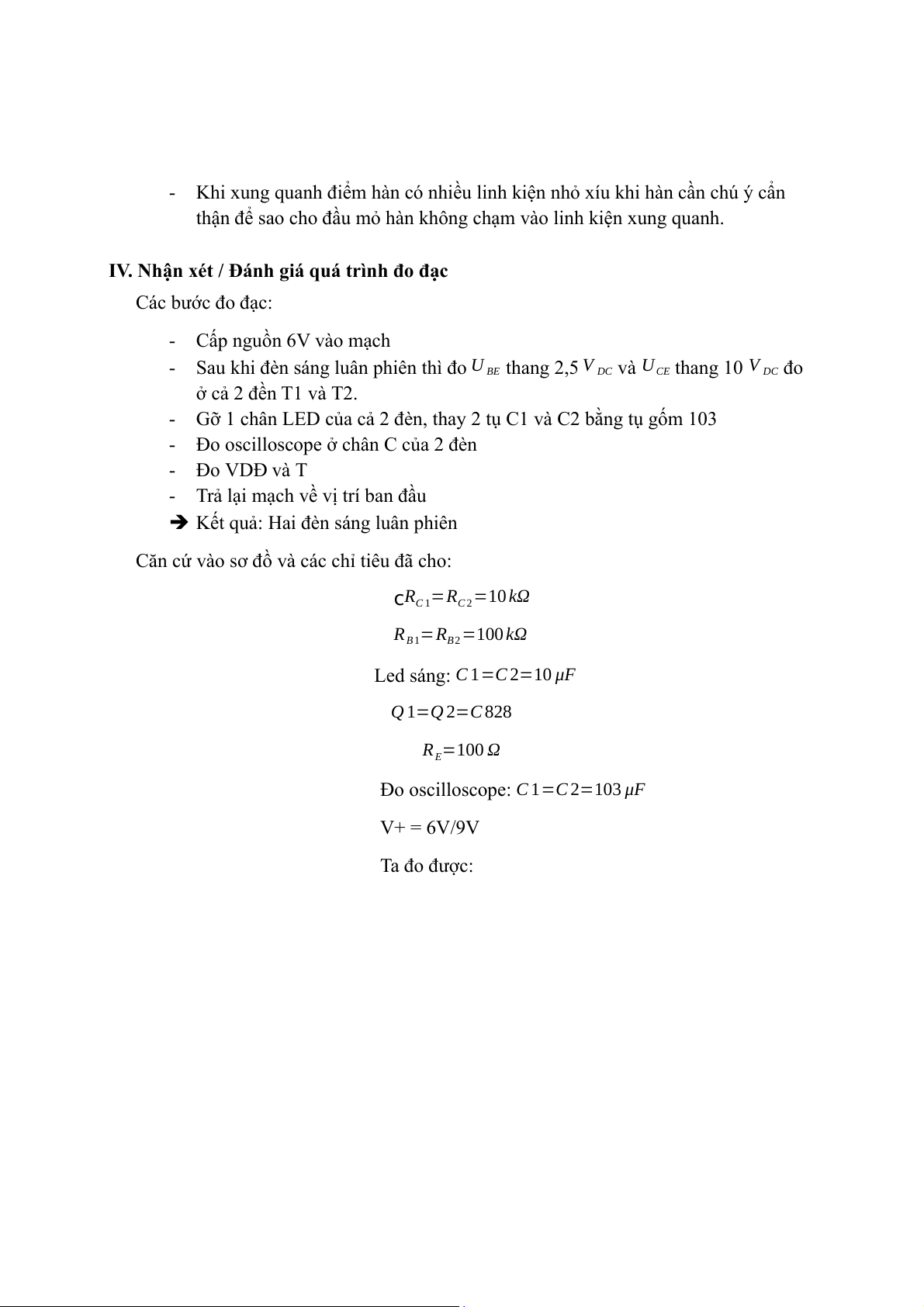 IV. Nhận xét / Đánh giá quá trình đo đạc Các bước đo đạc: - Cấp nguồn 6V vào mạch