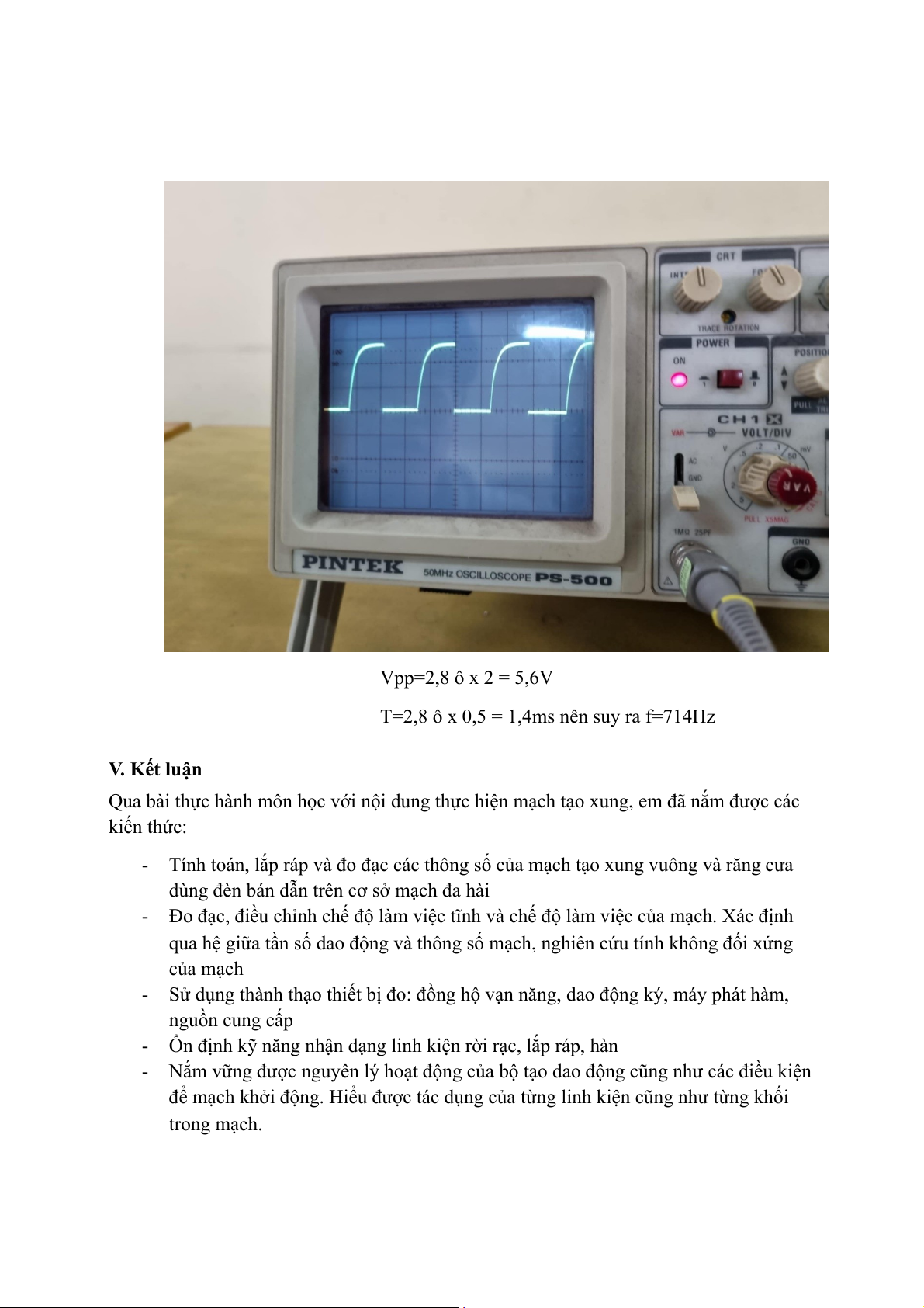 T=2,8 ô x 0,5 = 1,4ms nên suy ra f=714Hz V. Kết luận