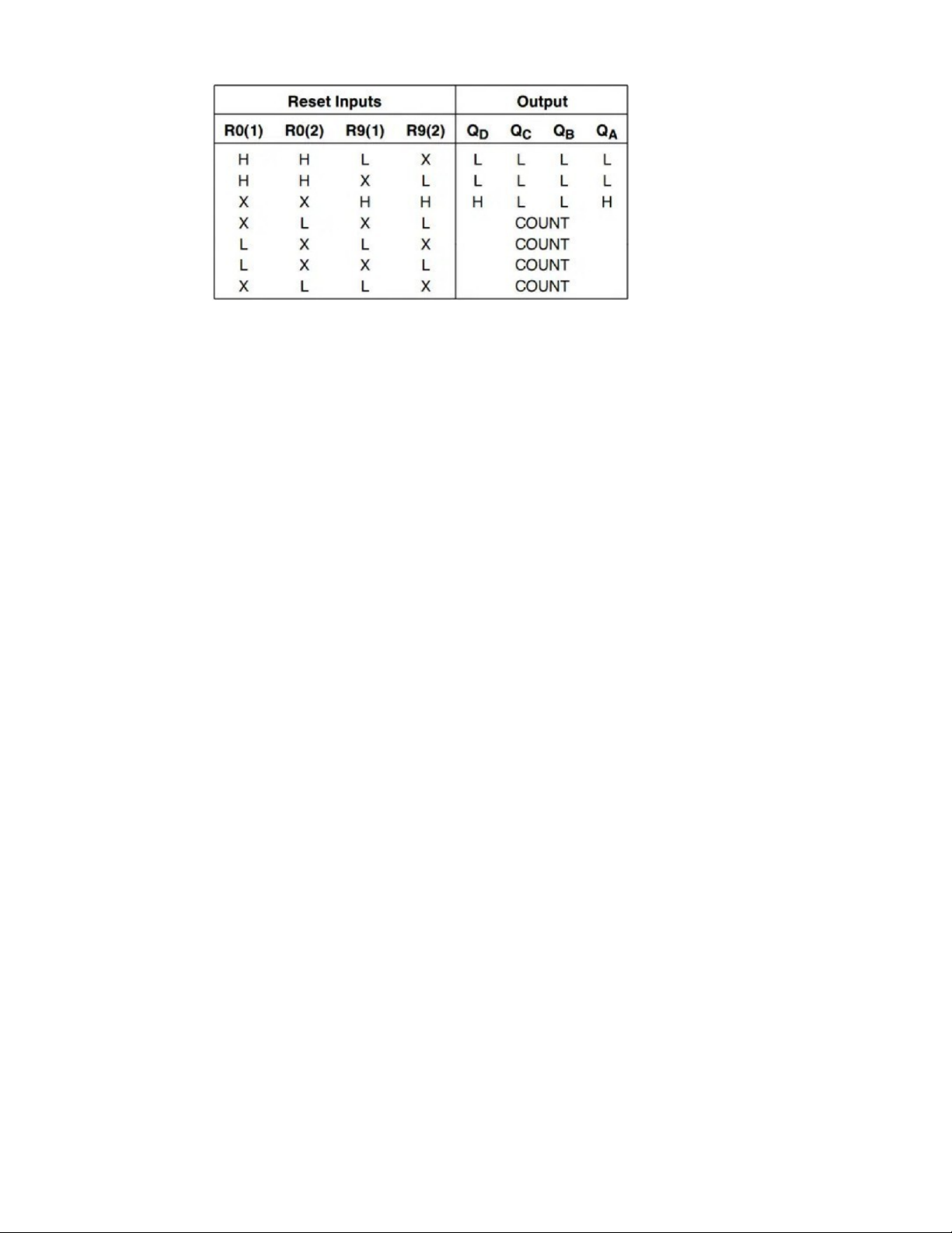 Figure 14 Bảng hoạt động Reset và đếm của IC đếm 74LS90