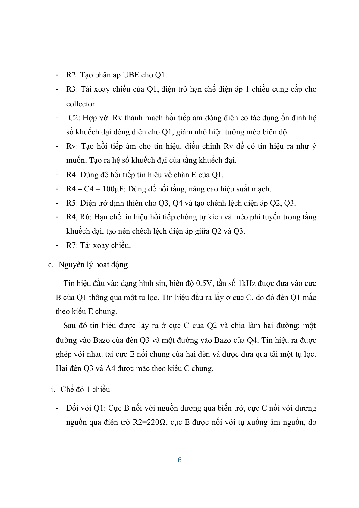 R4, R6: Hạn chế tín hiệu hồi tiếp chống tự kích và méo phi tuyến trong tầng