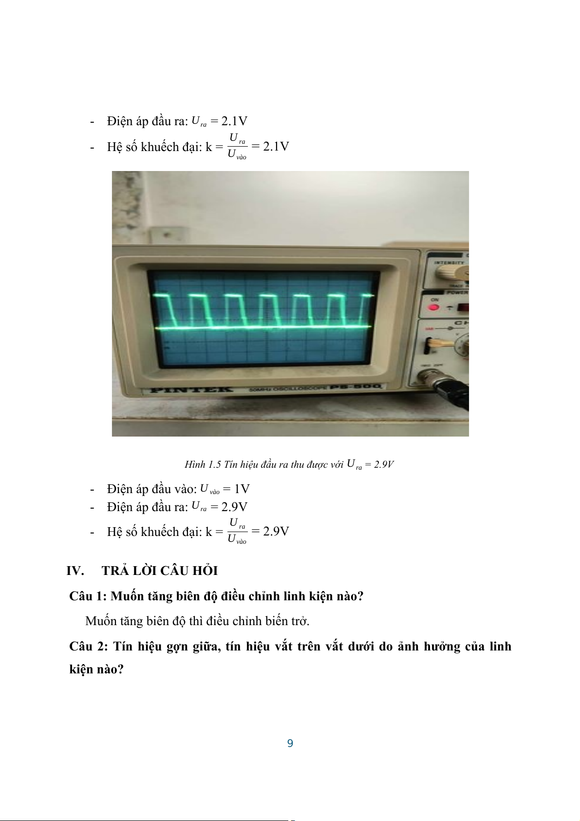 - Hệ số khuếch đại: k = ra = 2.9V U vào IV. TRẢ LỜI CÂU HỎI