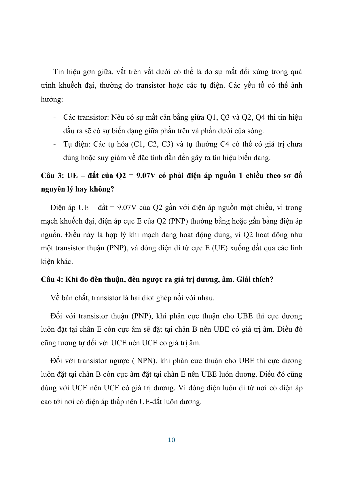Câu 2: Tín hiệu gợn giữa, tín hiệu vắt trên vắt dưới do ảnh hưởng của linh kiện nào? 9