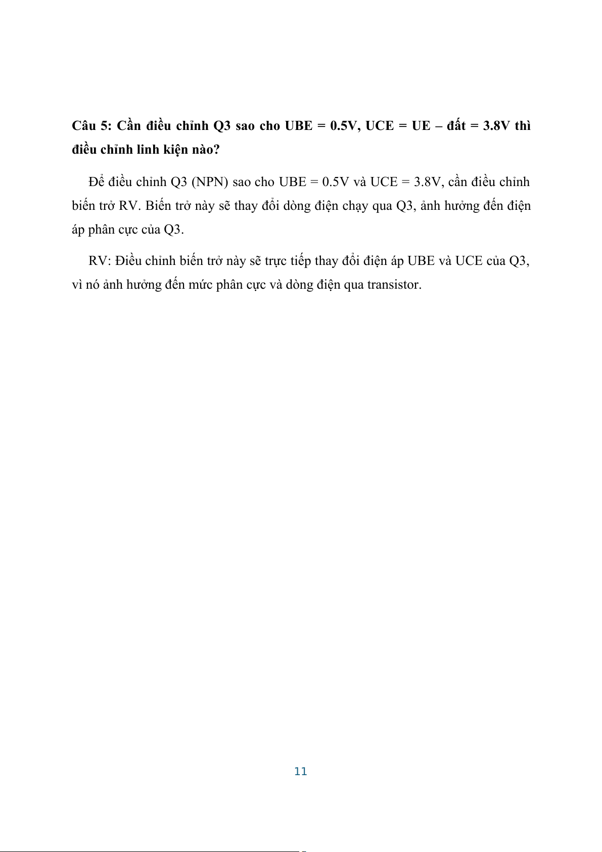 Câu 5: Cần điều chỉnh Q3 sao cho UBE = 0.5V, UCE = UE – đất = 3.8V thì