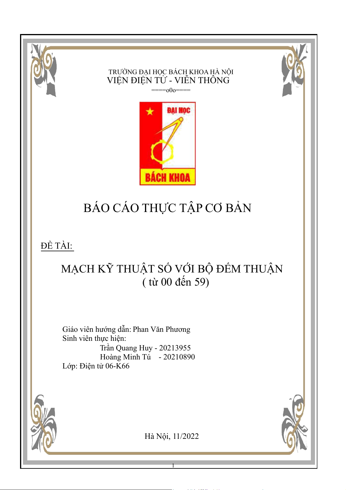 Giáo viên hướng dẫn: Phan Văn Phương Sinh viên thực hiện: Trần Quang Huy - 20213955 Hoàng Minh Tú - 20210890 Lớp: Điện tử 06-K66 Hà Nội, 11/2022 1 LỜI NÓI ĐẦU