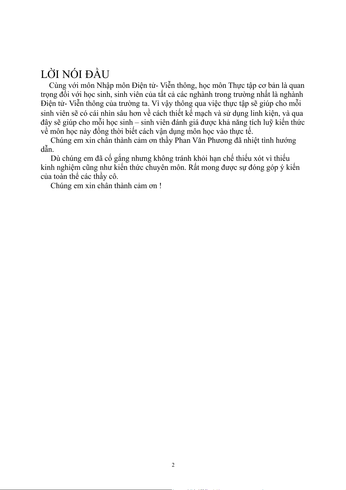 Điện tử- Viễn thông của trường ta. Vì vậy thông qua việc thực tập sẽ giúp cho mỗi