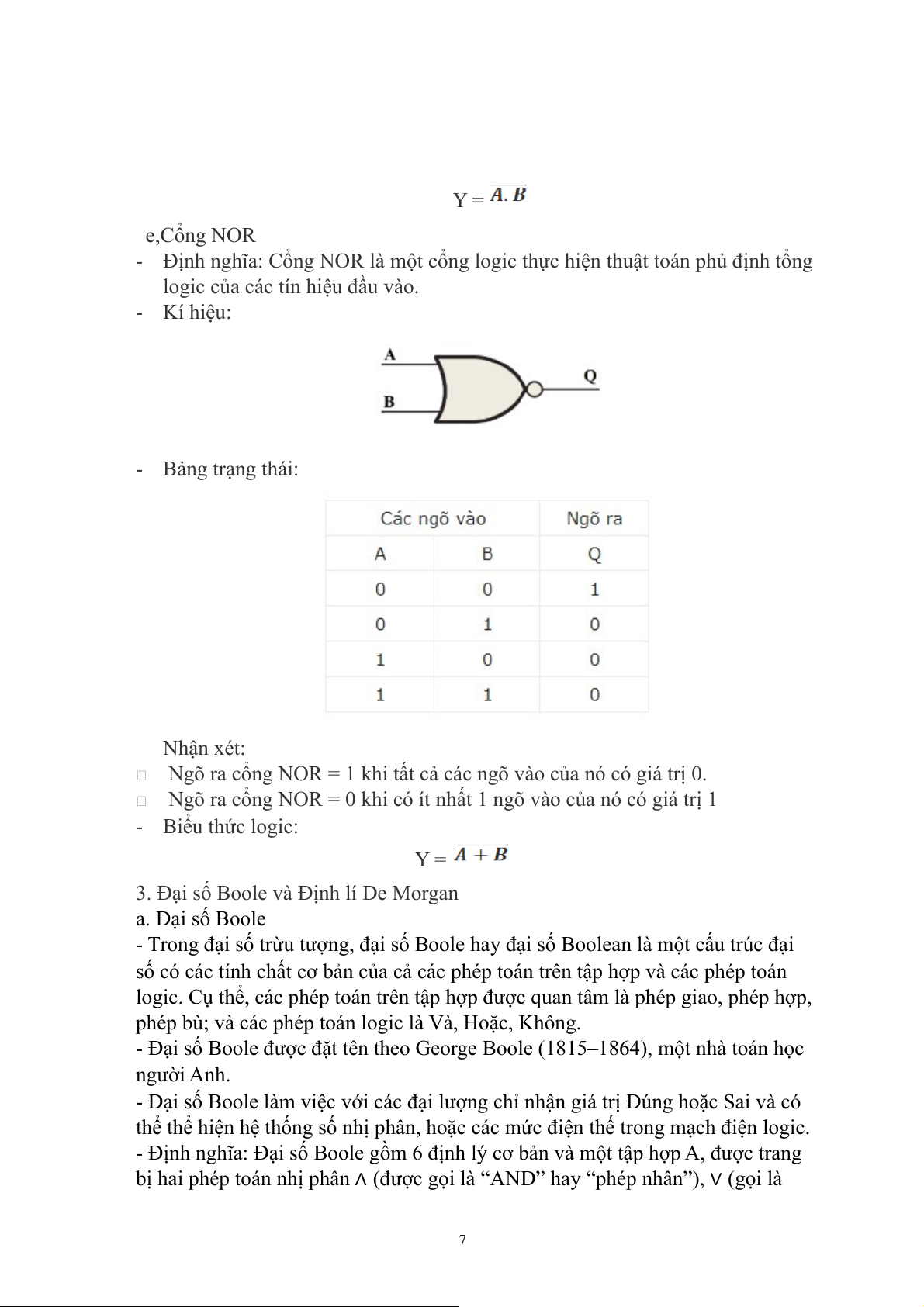 Ngõ ra cổng NAND = 0 khi tất cả các ngõ vào của nó bằng 1. - Biểu thức logic: 6 Y = e,Cổng NOR