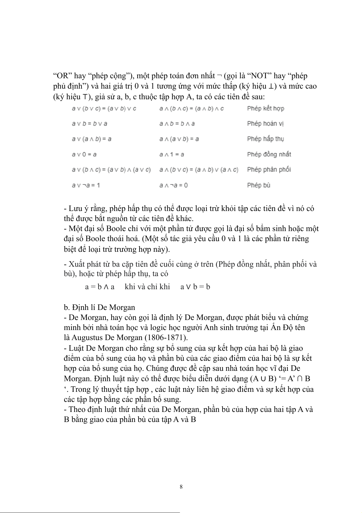 3. Đại số Boole và Định lí De Morgan a. Đại số Boole