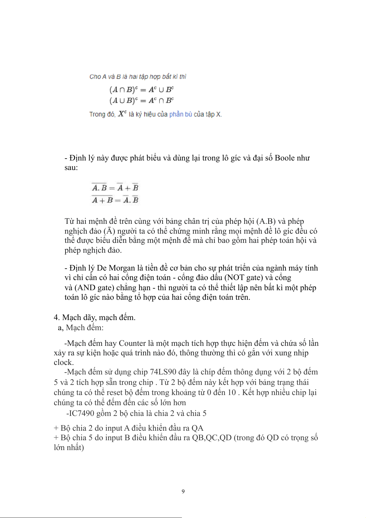 - Định lý De Morgan là tiền đề cơ bản cho sự phát triển của ngành máy tính