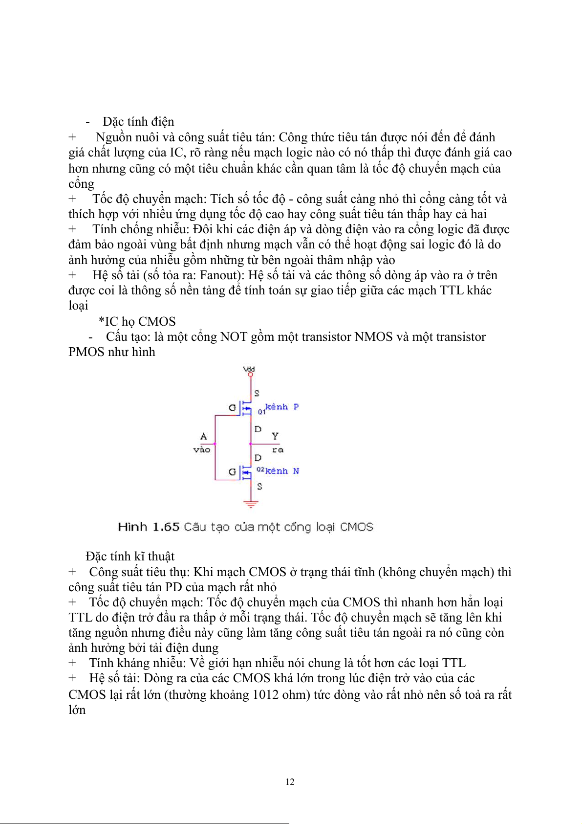 + Công suất tiêu thụ: Khi mạch CMOS ở trạng thái tĩnh (không chuyển mạch) thì