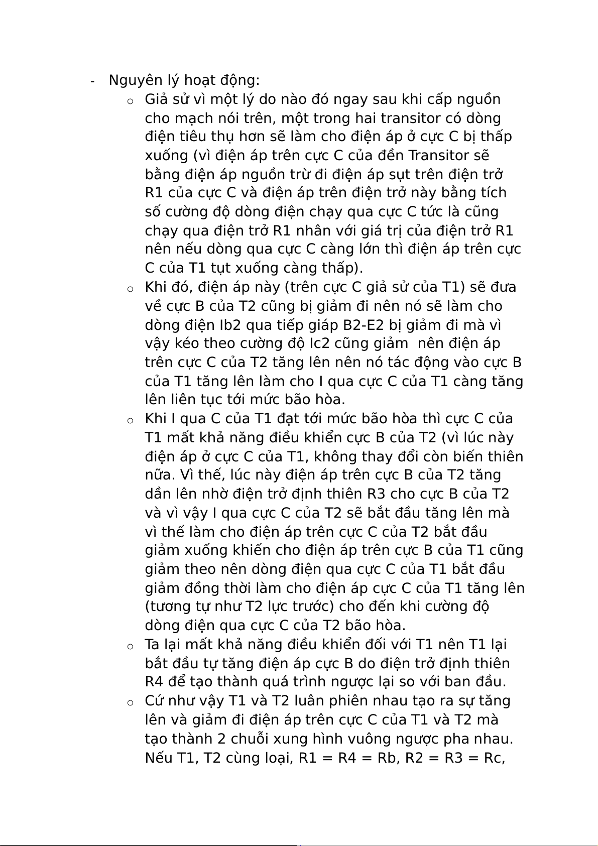 nhau bằng t$ C1, C2 tạo thành mạch khuếch đại có phản hồi toàn phần. - Nguyên lý hoạt động: o