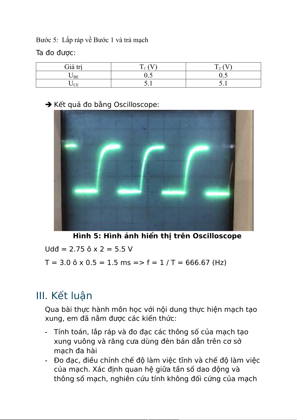 T = 3.0 ô x 0.5 = 1.5 ms => f = 1 / T = 666.67 (Hz) III. Kết luận
