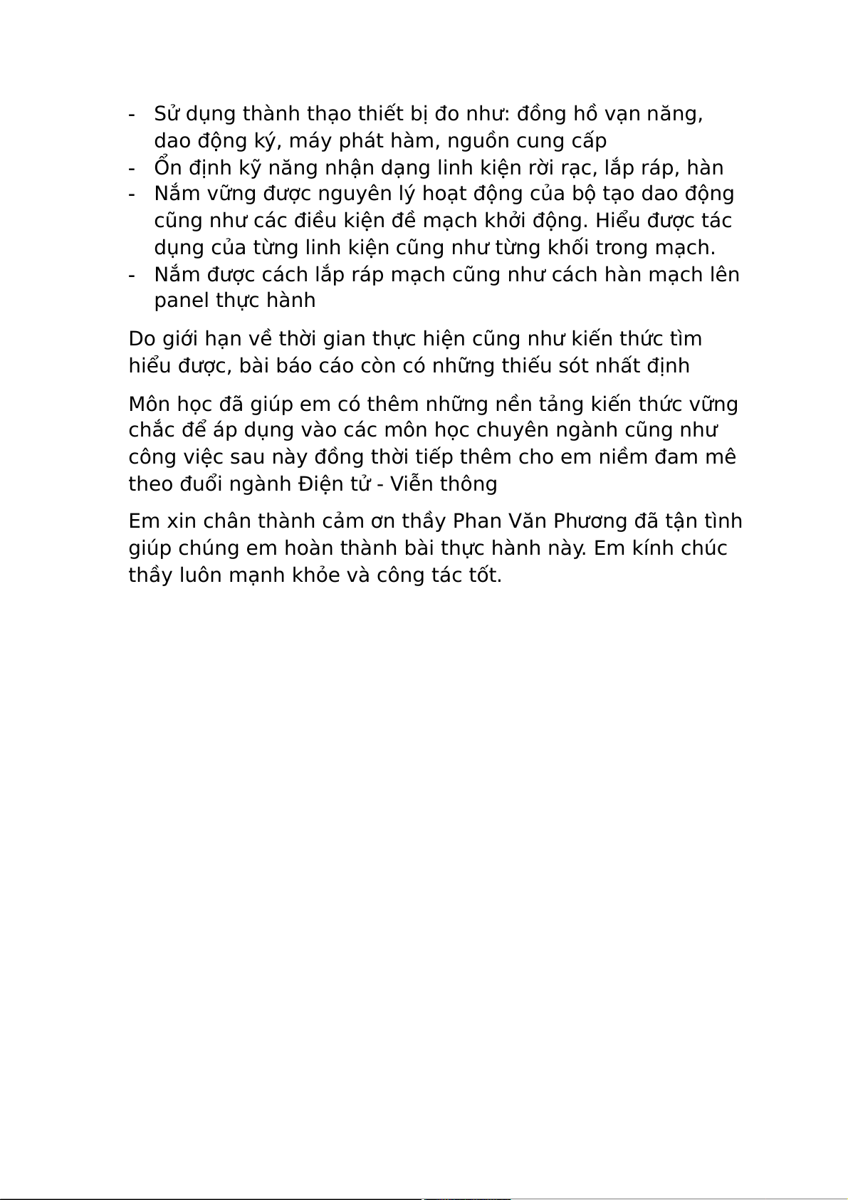 Qua bài thực hành môn học với nội dung thực hiện mạch tạo