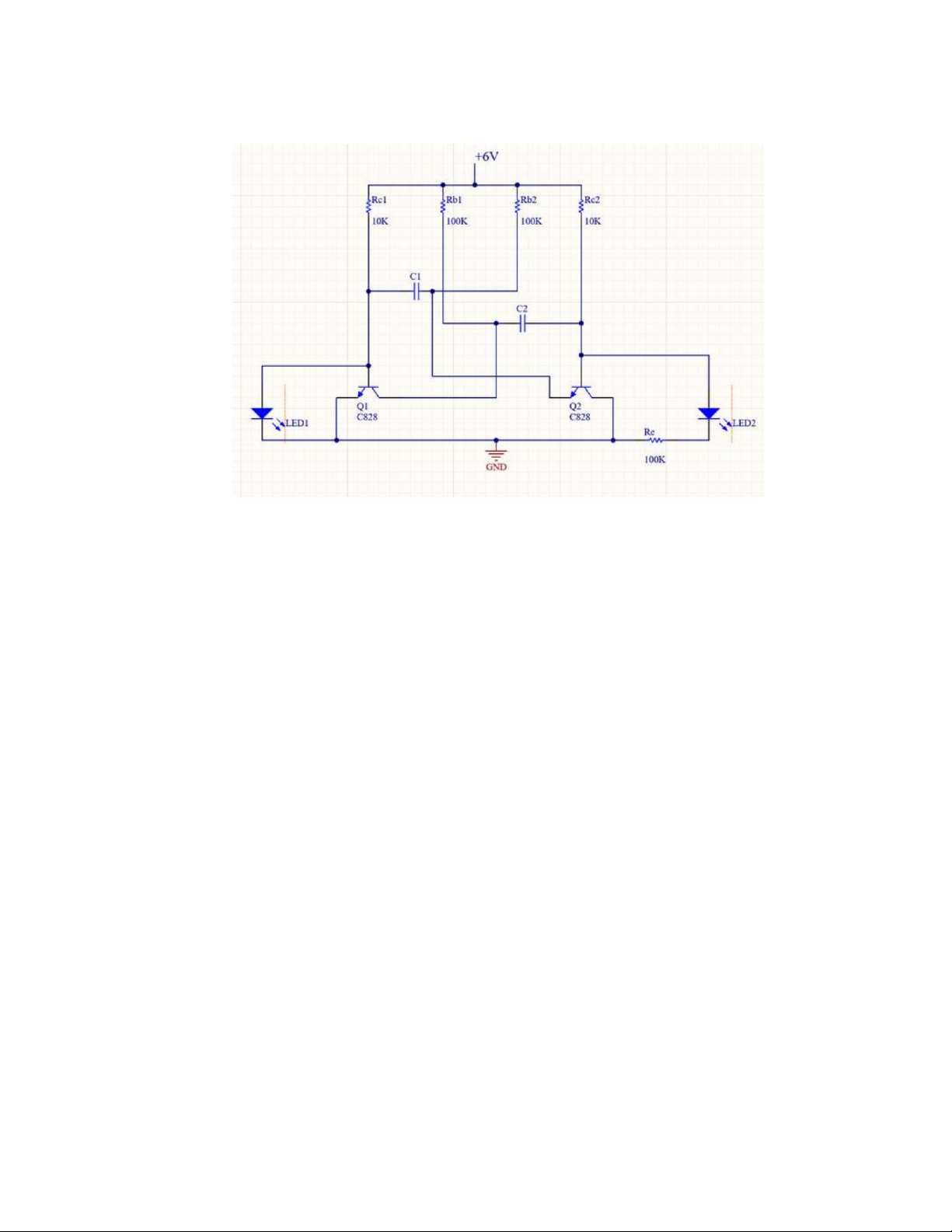 2. Nguyên lý hoạt động của mạch tạo xung vuông 2.1. Mạch nguyên lý -Các thông số: + R1=R4=10K + R2=R3=100K + C1=C2=10uF + R5=100 Ohm + T1=T2=C828 + C1=C2=103 + V+ =6V