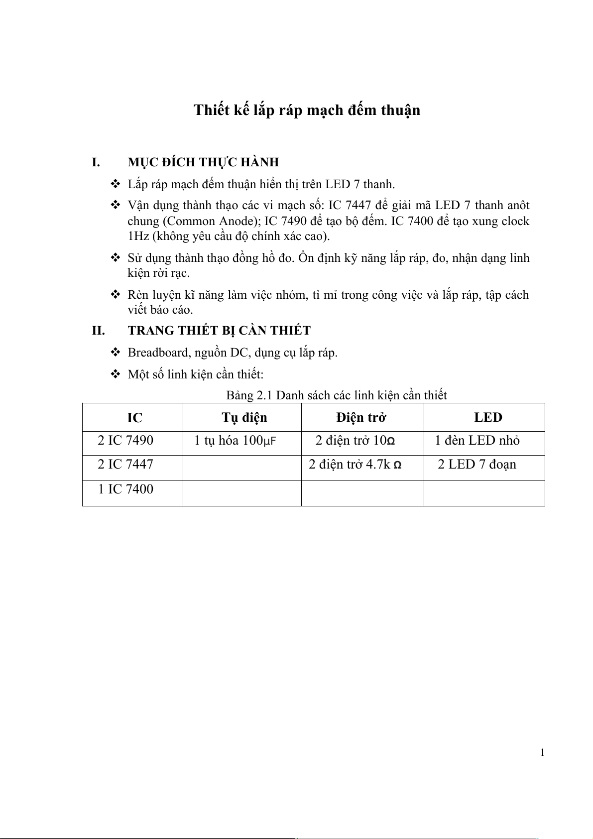 BÀI TẬP: THIẾT KẾ LẮP RÁP MẠCH ĐẾM THUẬN