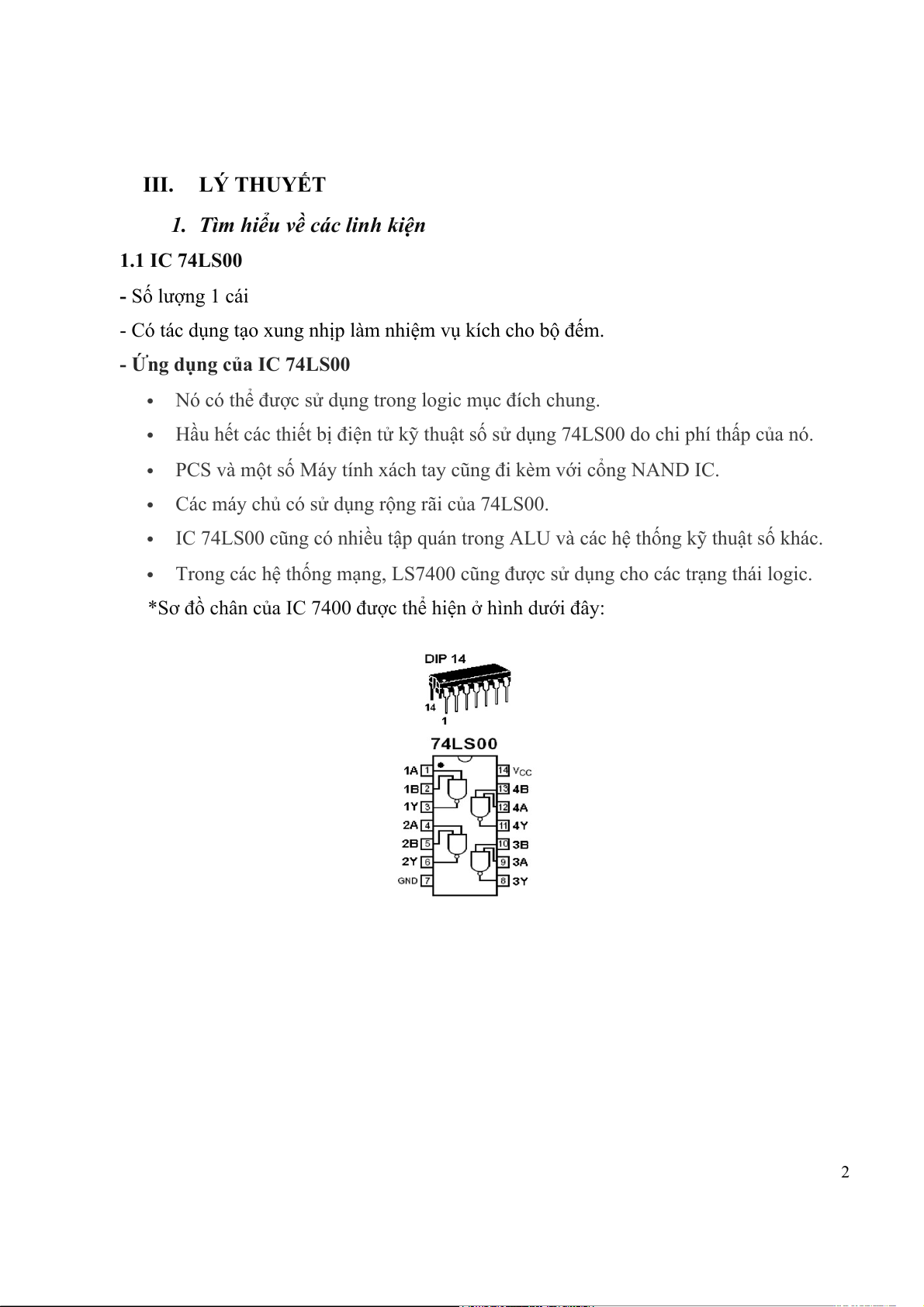 1. Tìm hiểu về các linh kiện 1.1 IC 74LS00 - Số lượng 1 cái