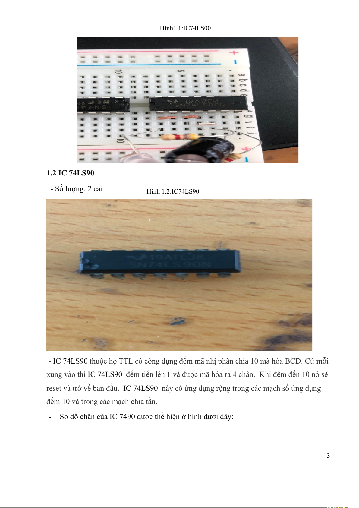 *Sơ đồ chân của IC 7400 được thể hiện ở hình dưới đây: 2 Hình1.1:IC74LS00 1.2 IC 74LS90 - Số lượng: 2 cái Hình 1.2:IC74LS90