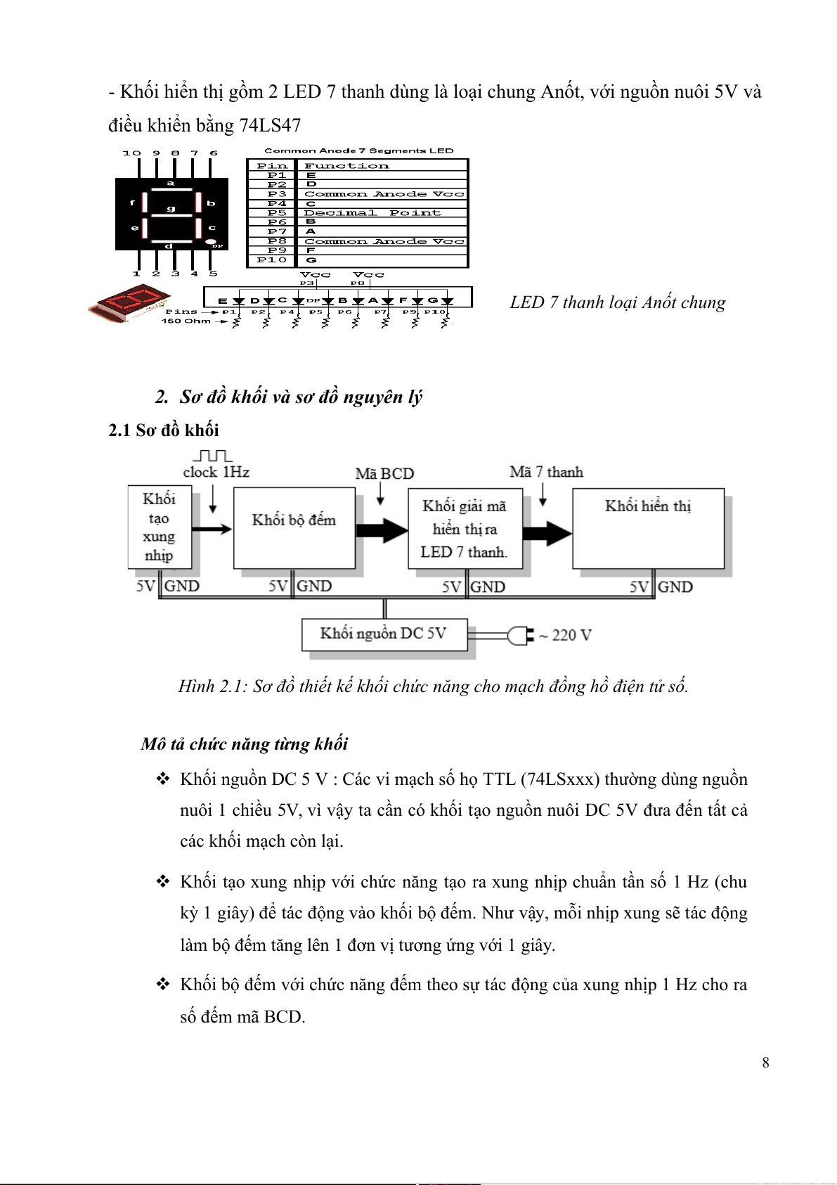 - Khối hiển thị gồm 2 LED 7 thanh dùng là loại chung Anốt, với nguồn nuôi 5V và điều khiển bằng 74LS47