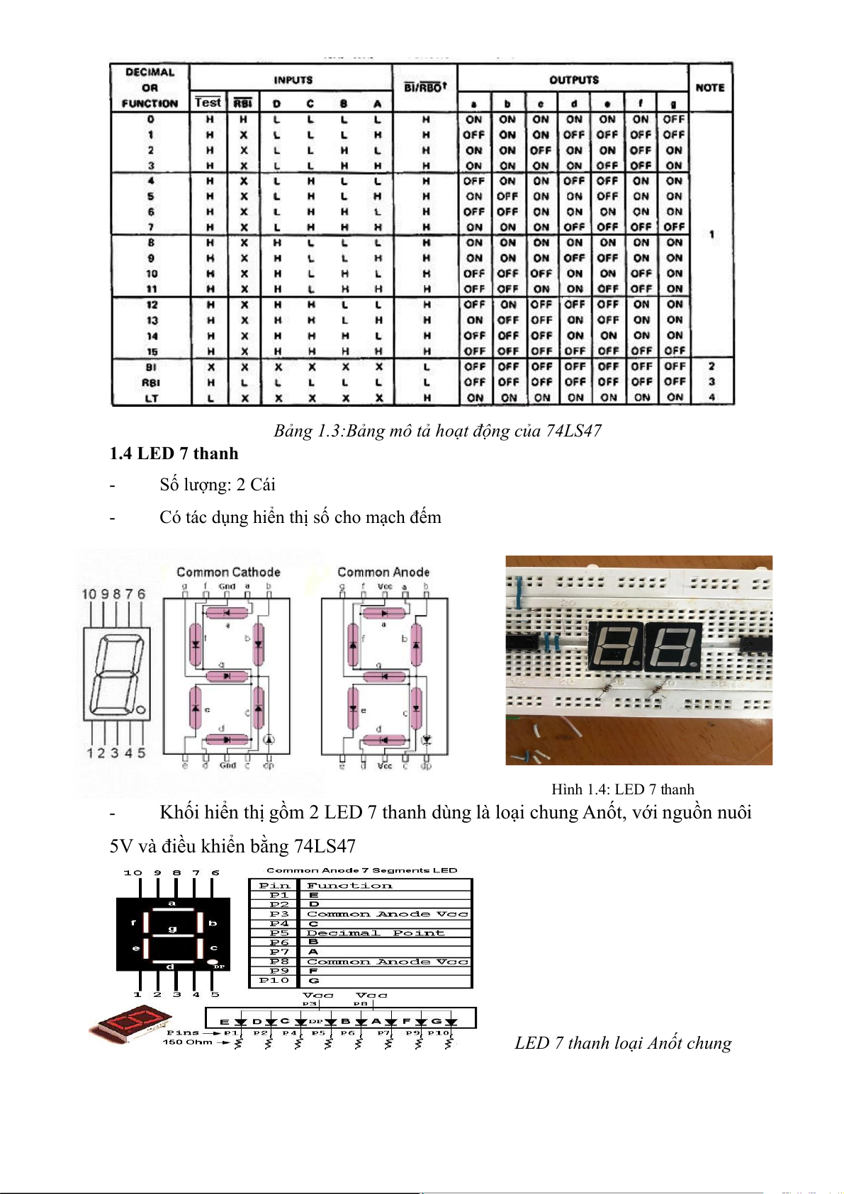 Bảng 1.3:Bảng mô tả hoạt động của 74LS47 1.4 LED 7 thanh - Số lượng: 2 Cái -