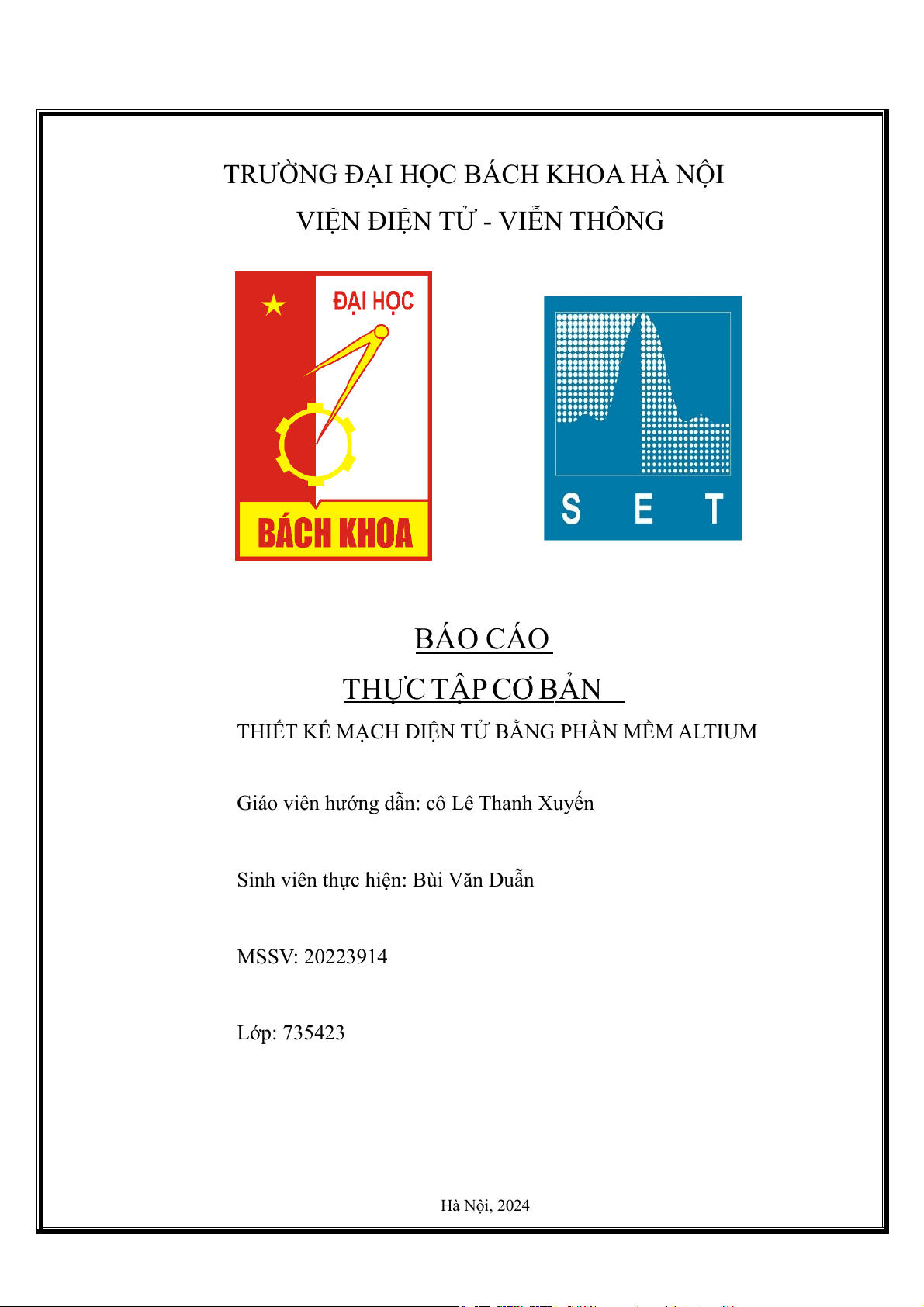 VIỆN ĐIỆN TỬ - VIỄN THÔNG BÁO CÁO THỰC TẬP CƠ BẢN