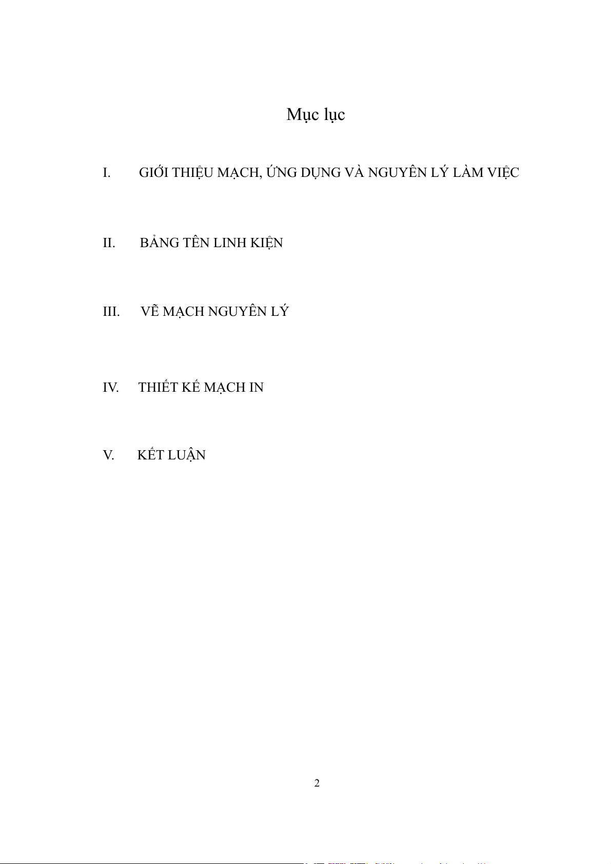 GIỚI THIỆU MẠCH, ỨNG DỤNG VÀ NGUYÊN LÝ LÀM VIỆC II. BẢNG TÊN LINH KIỆN III. VẼ MẠCH NGUYÊN LÝ IV. THIẾT KẾ MẠCH IN V. KẾT LUẬN 2 BÁO CÁO THỰC HÀNH