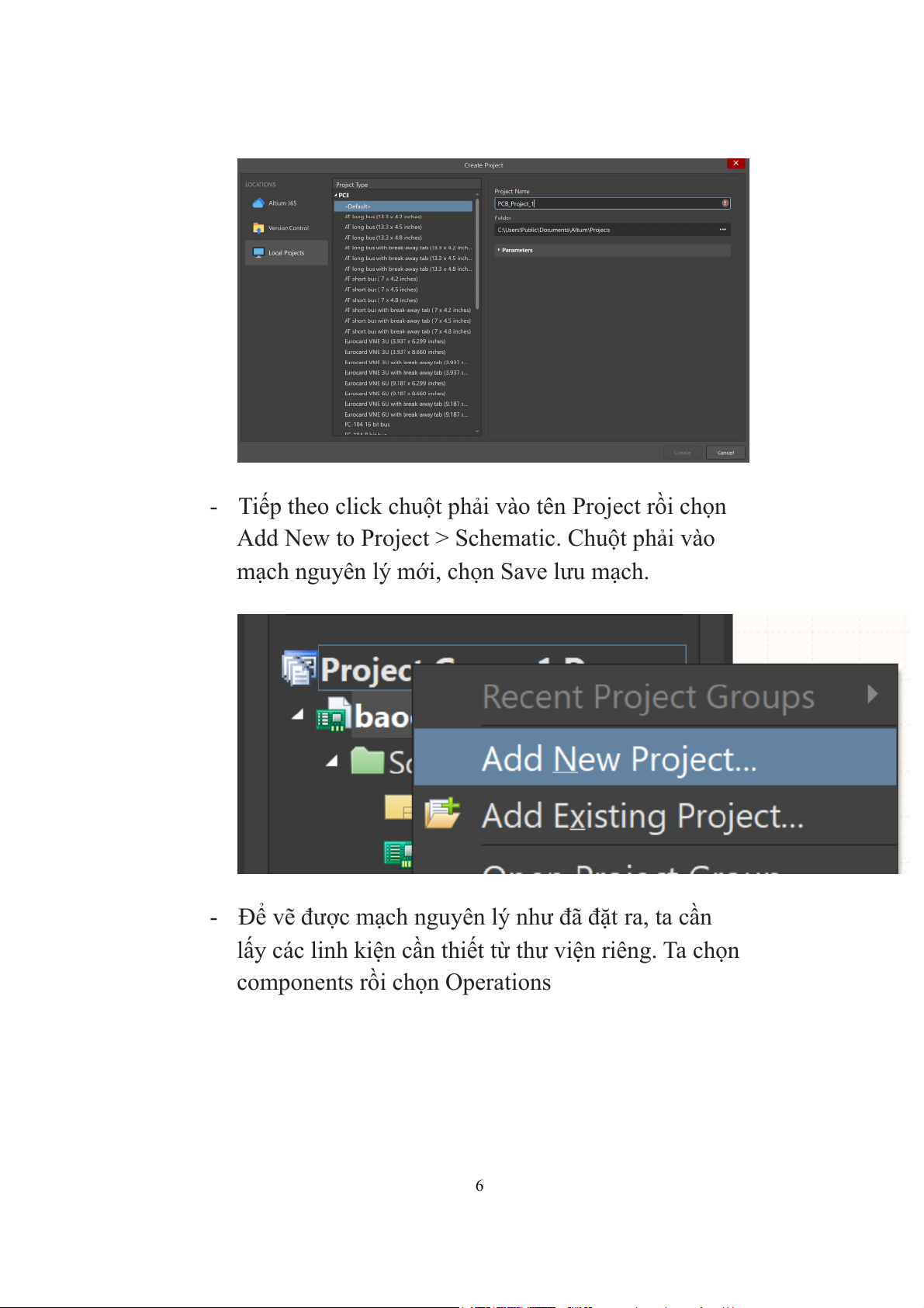 cách chuột phải vào Project -> Add new Project -> PCB - Sau đó ta Save lại