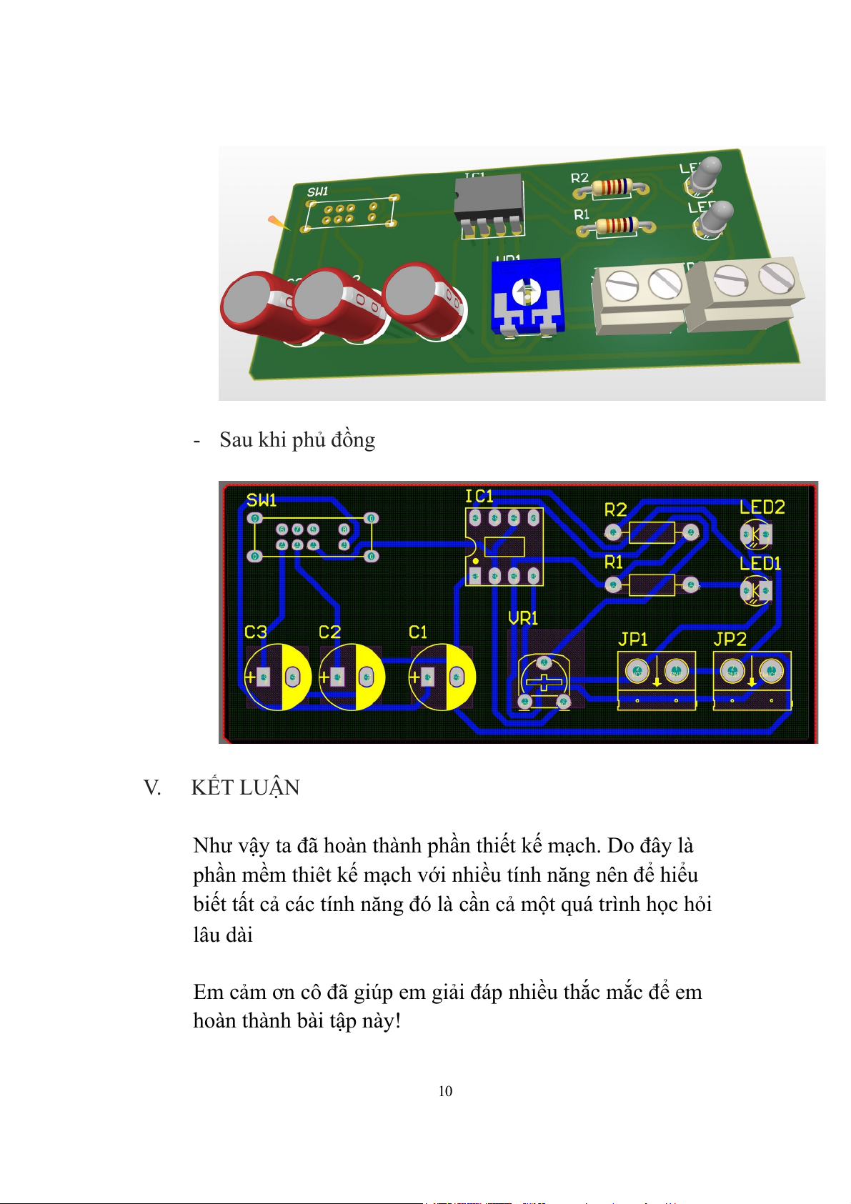 - Ta được kết quả như sau: - Mạch 3D 9 - Sau khi phủ đồng V. KẾT LUẬN