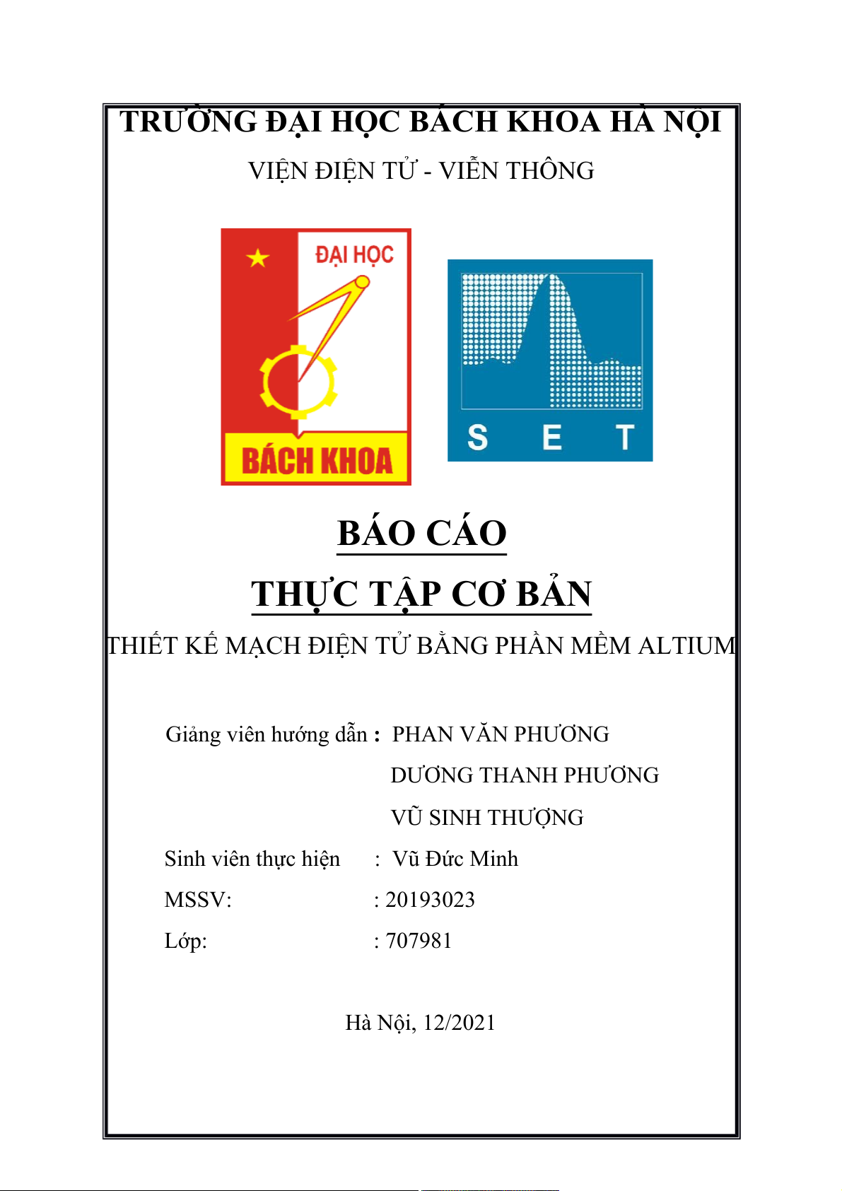 Sinh viên thực hiện : Vũ Đức Minh MSSV: : 20193023 Lớp: : 707981 Hà Nội, 12/2021 Mục lục