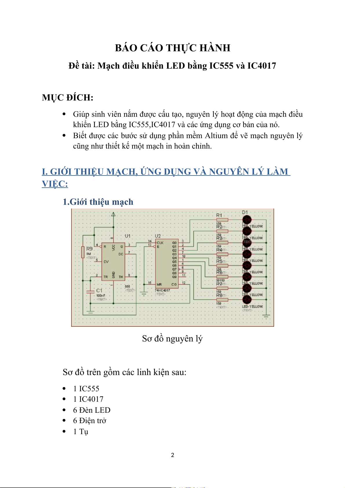 Đề tài: Mạch điều khiển LED bằng IC555 và IC4017 MỤC ĐÍCH: