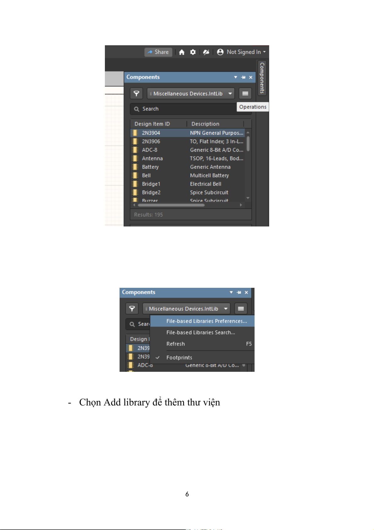 kiện cần thiết từ thư viện riêng. Ta chọn components rồi chọn Operations 5