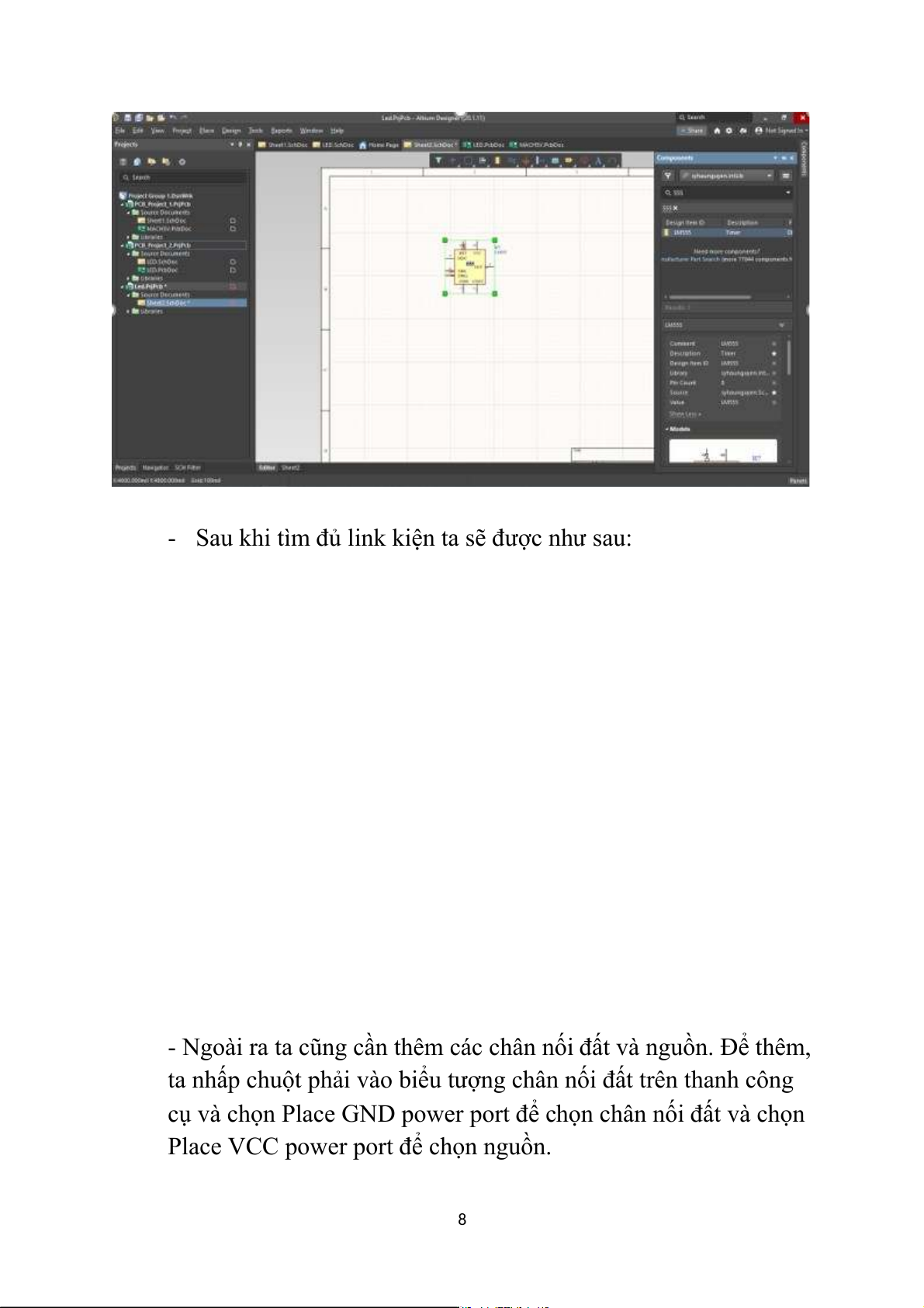 - Ngoài ra ta cũng cần thêm các chân nối đất và nguồn. Để thêm,