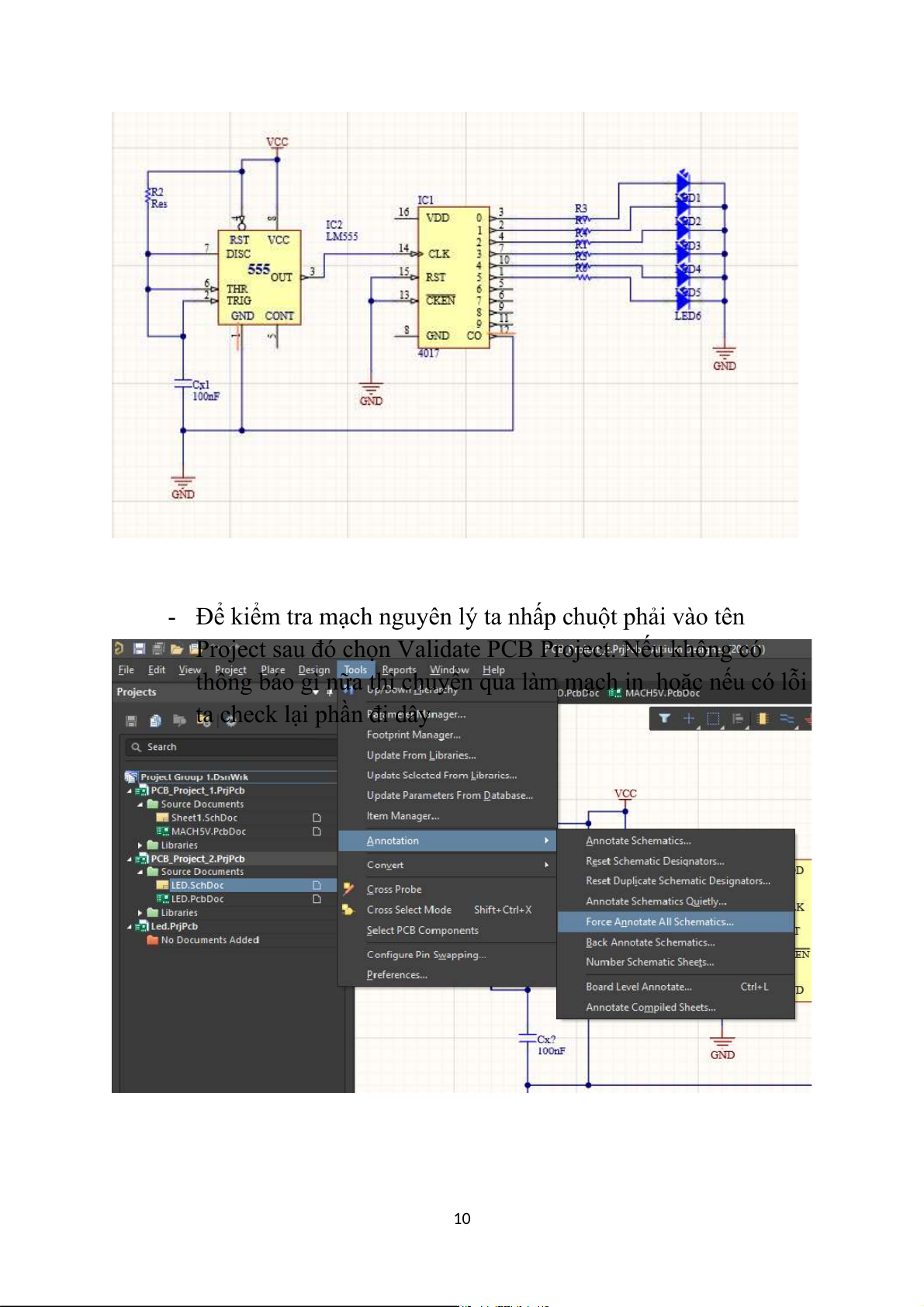 Project sau đó chọn Validate PCB Project. Nếu không có