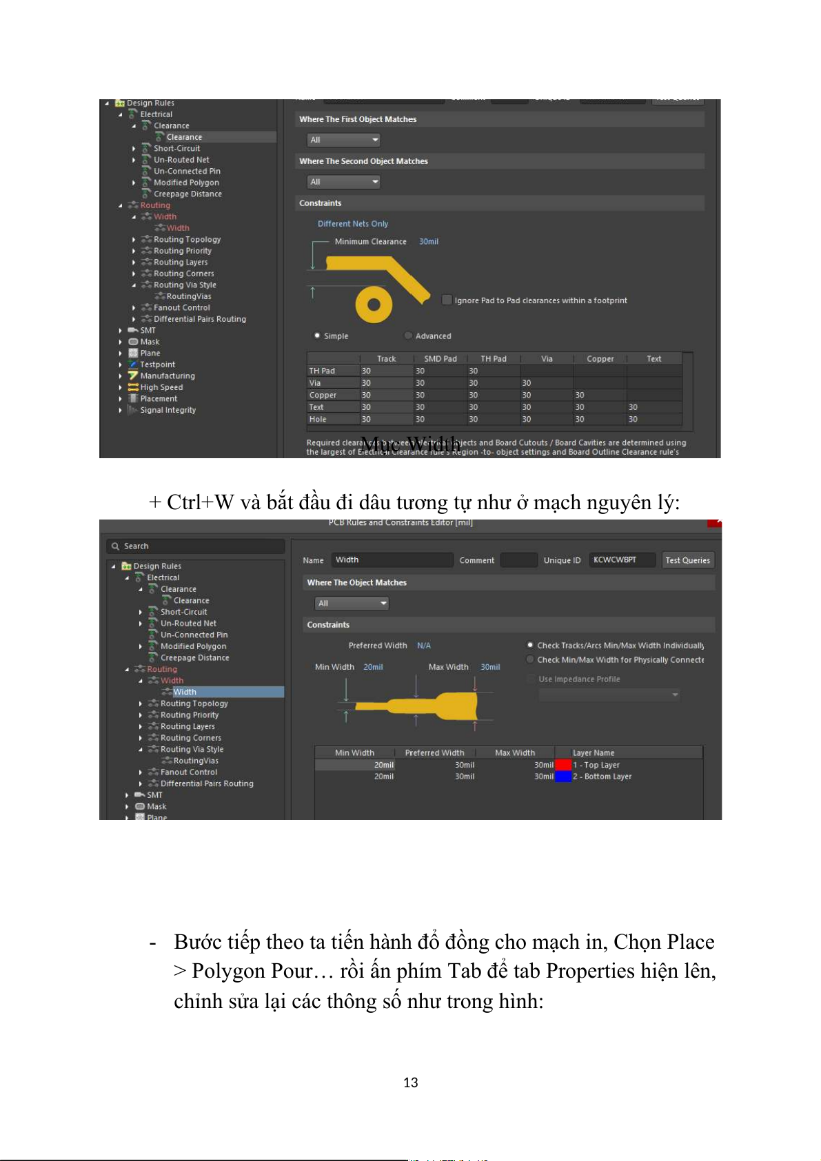 + Ctrl+W và bắt đầu đi dâu tương tự như ở mạch nguyên lý: